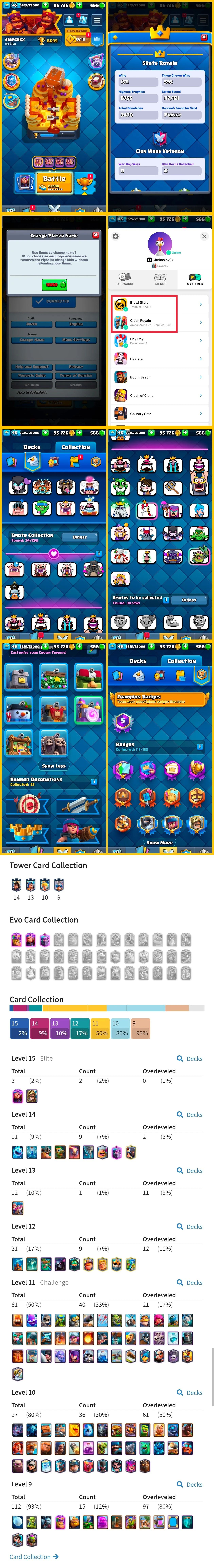 [CR + 17K TROPHY BS] LVL 45, 117 ALL Cards & 5 Years OLD ID | 9 Cards Level 14 + 2 Level 15 | 9 LVL12, 40 LVL11, 36 LVL10 | 8699 TROPHY | CH468