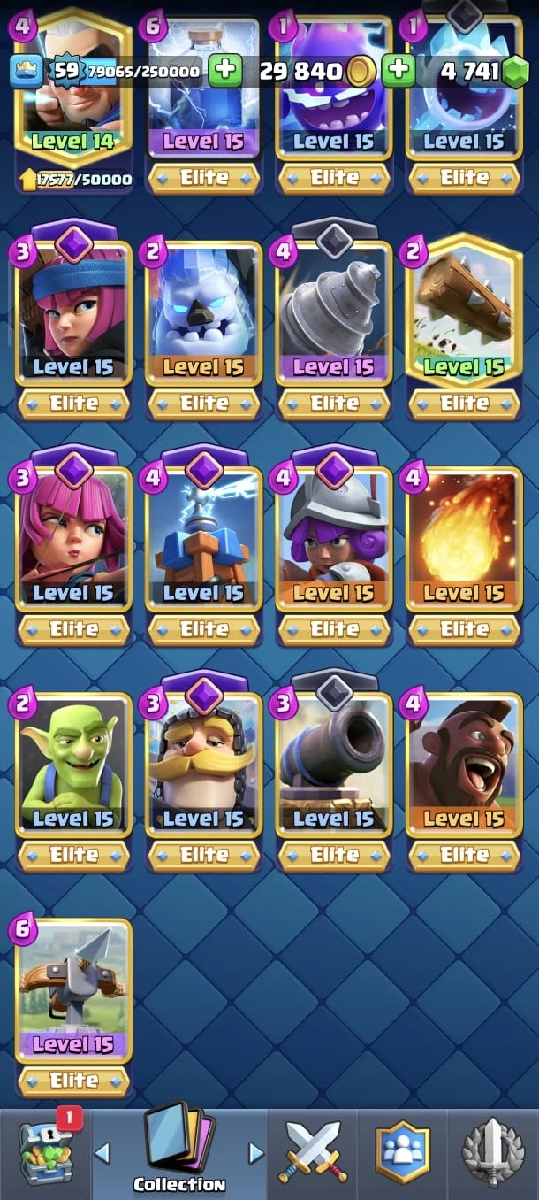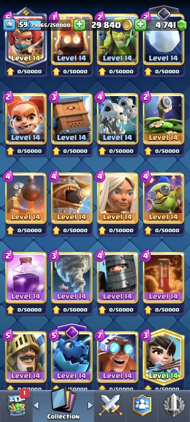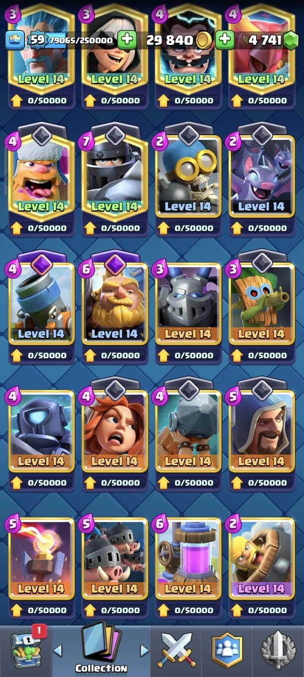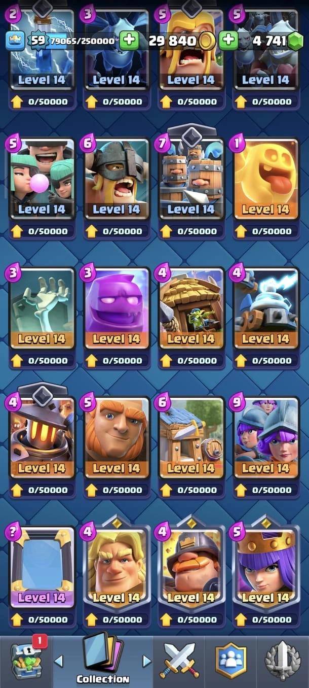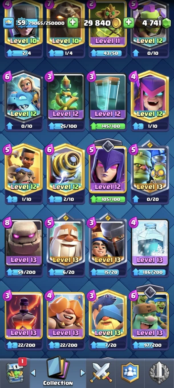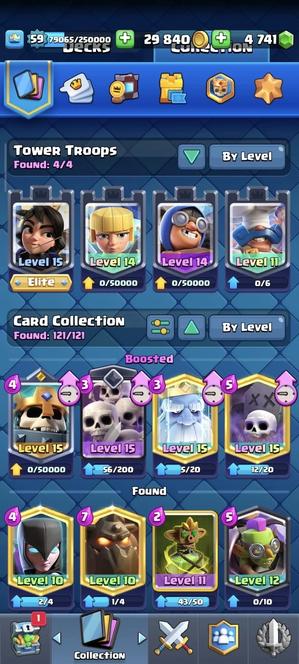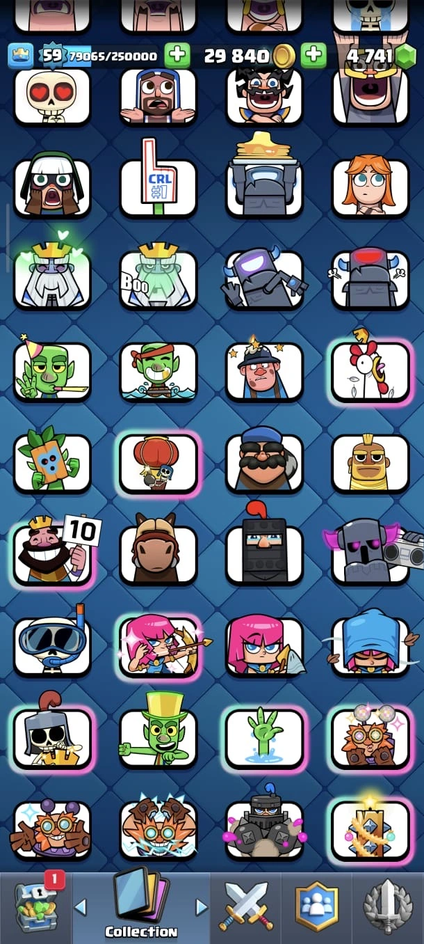 CR LV 59 🔥 Max Cards 98 🔥 Elite 16 🔥 Evo 9 🔥 Emote 186 🔥 Skins towers 20 🔥 Trophy 12000 🔥 Change name free 🔥 Very Cheap 🔥