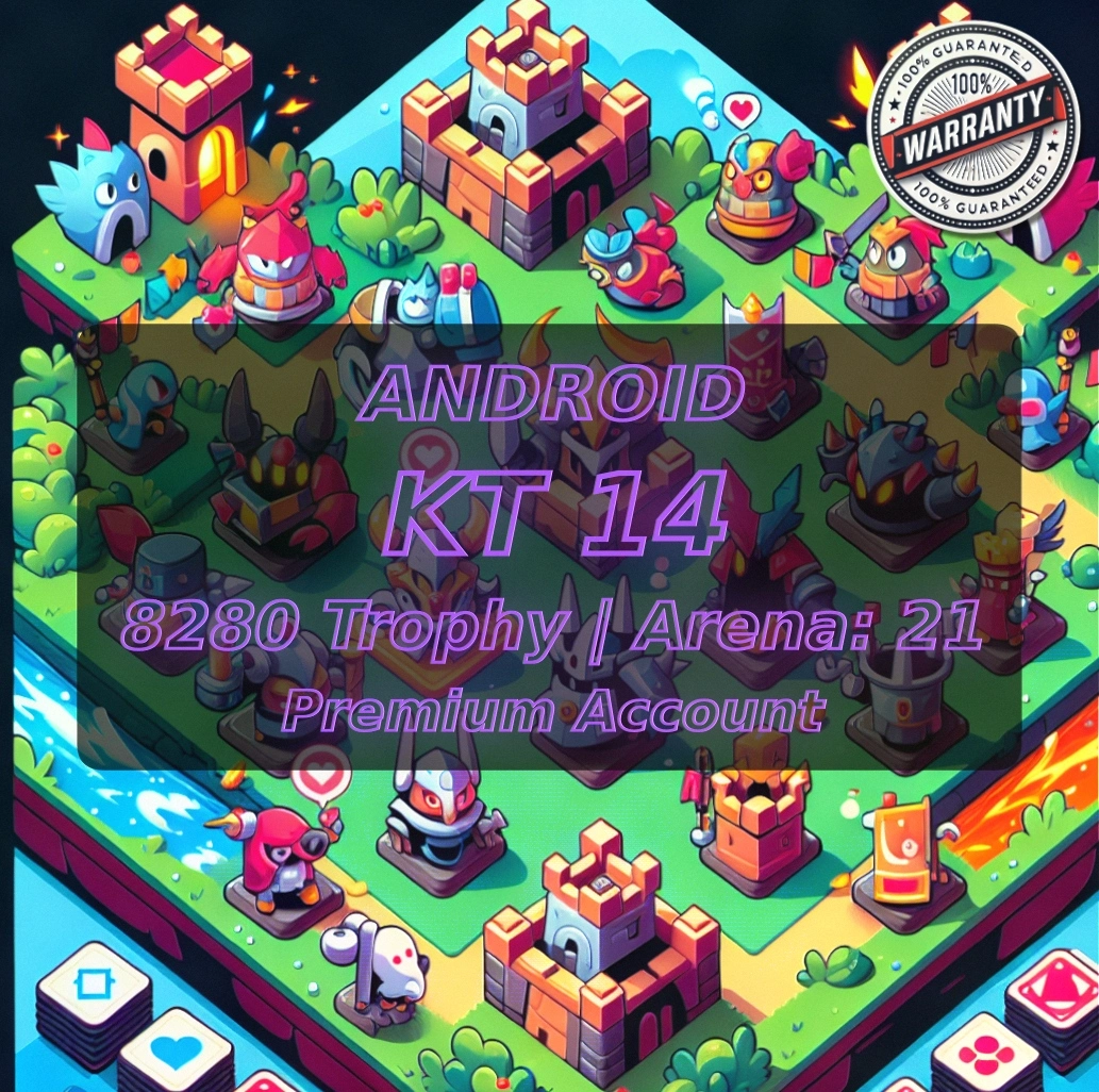 KT 14 LEVEL 52+Trophies:8280+10 Evolution+118 Cards+5 Cards (MAX) + 23 Cards (14LVL)+6 Tower Skins+58 Emotes+427K Gold+1381 Gems+IOS/ANDROID #ID-164826
