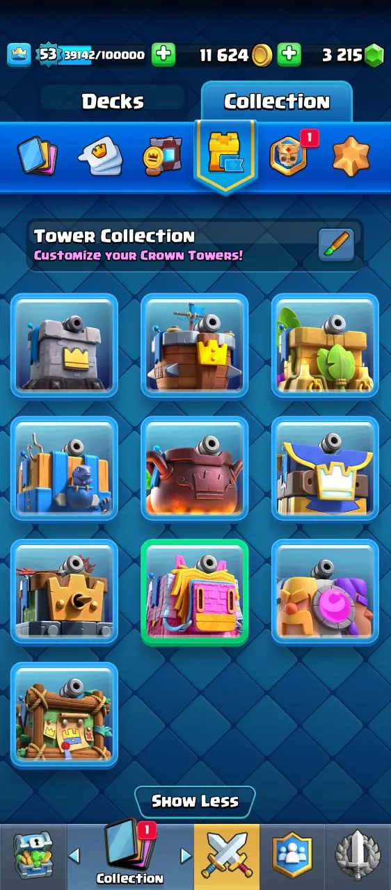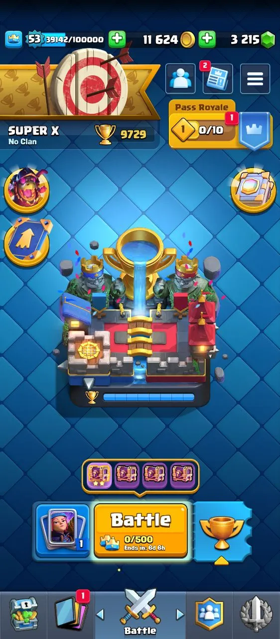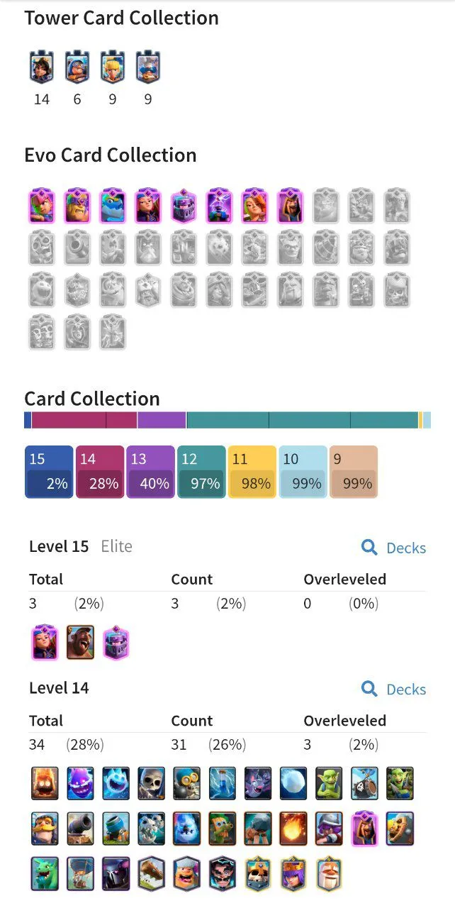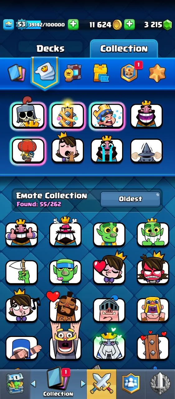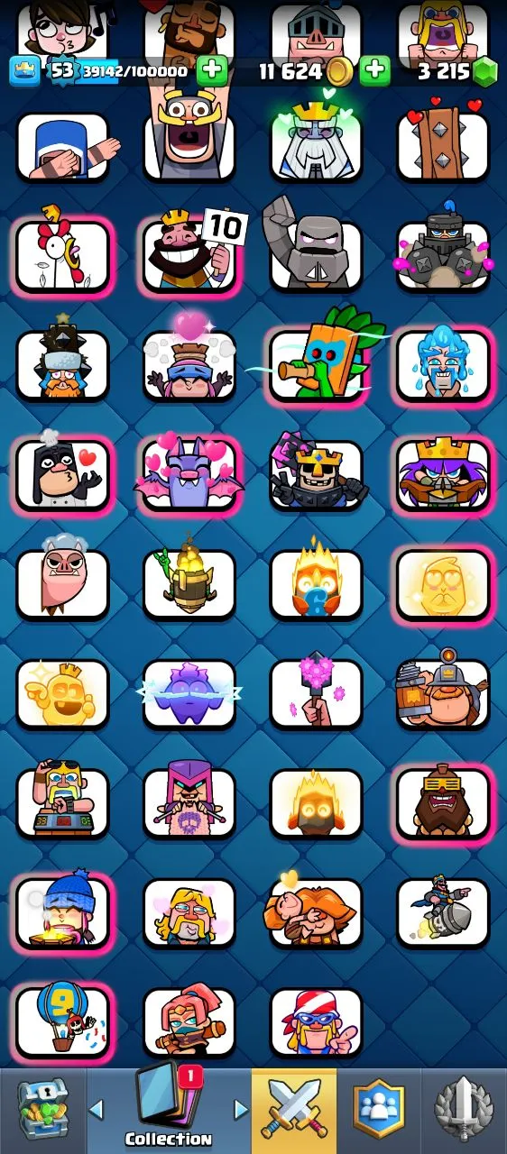 🏆 LEGENDARY ARENA ⭕️ LVL 53 KT14 ⭕️ 9,904 PB ⭕️ 34 MAX CARDS 💎 ⭕️ 3 ELITE ⚔️ ⭕️ 8 EVO CARDS 🔥 ⭕️ 11K GOLD 💰 3,215 GEMS 💎 ⭕️ 55+ EMOTES (INCLUDES RARES) 🎭 ⭕️ 9 TOWER SKINS 🏰 ⭕️ STACKED MAGIC ITEMS 📚 ⭕️ 8-YEAR BADGE 🎖 ⭕️ ⚡ INSTANT DELIVERY
