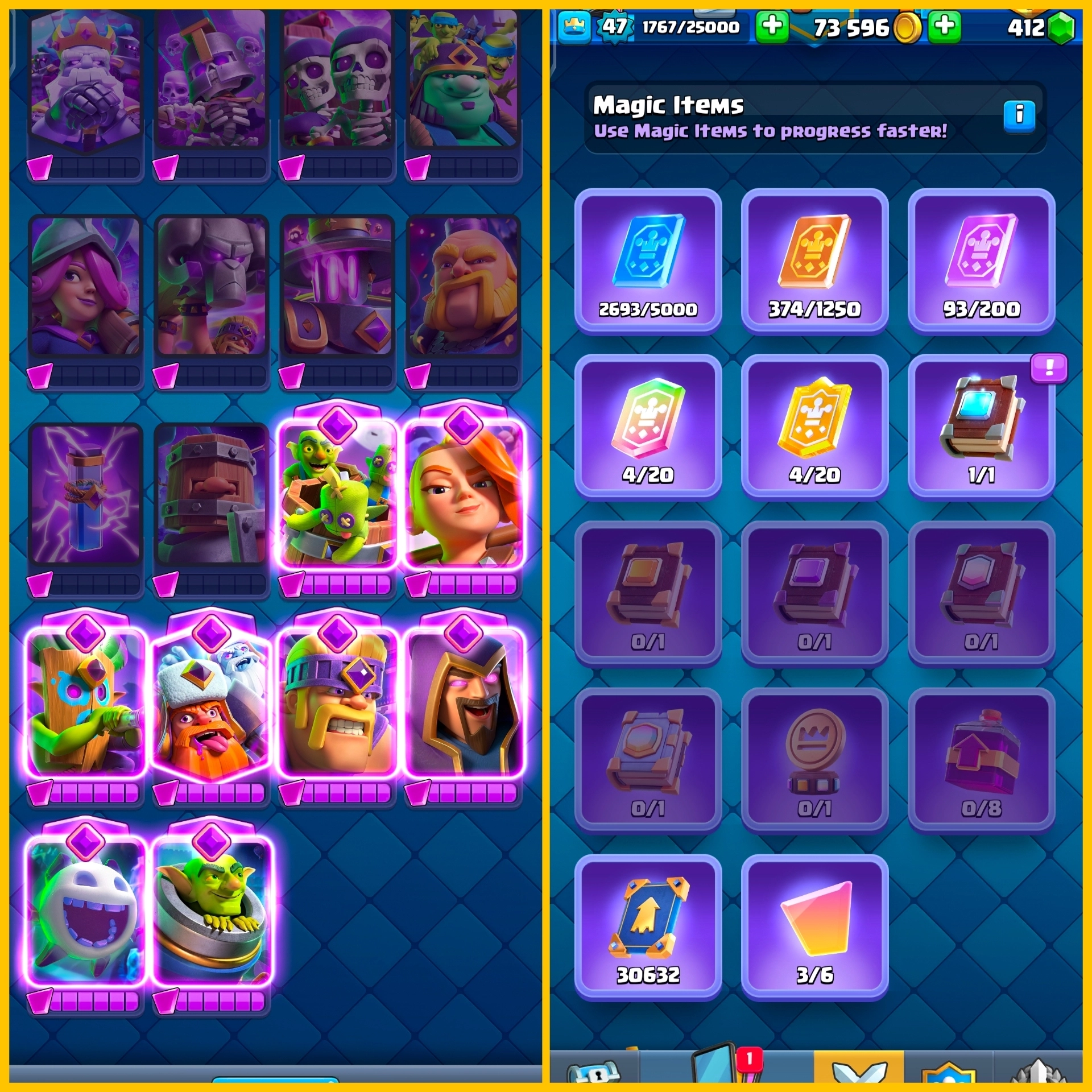 [LVL 46 + 118 ALL Cards] 8.1K TROPHY, 12 Tower SKINS | 8 EVOS Unlock, 4 Level 14 + 3 Level 15 | 19 LVL12, 24 LVL11 & 51 LVL10 | CH469