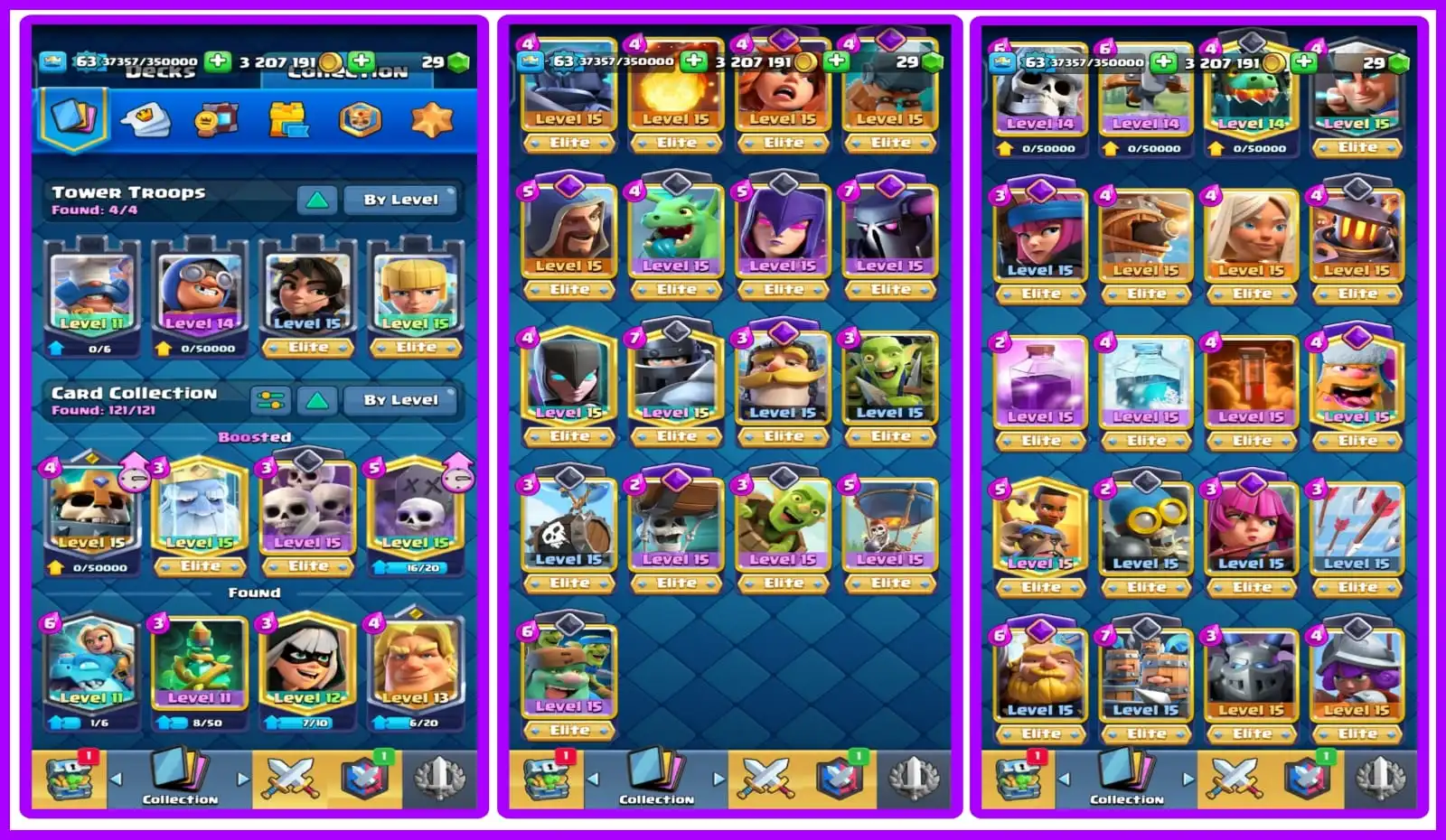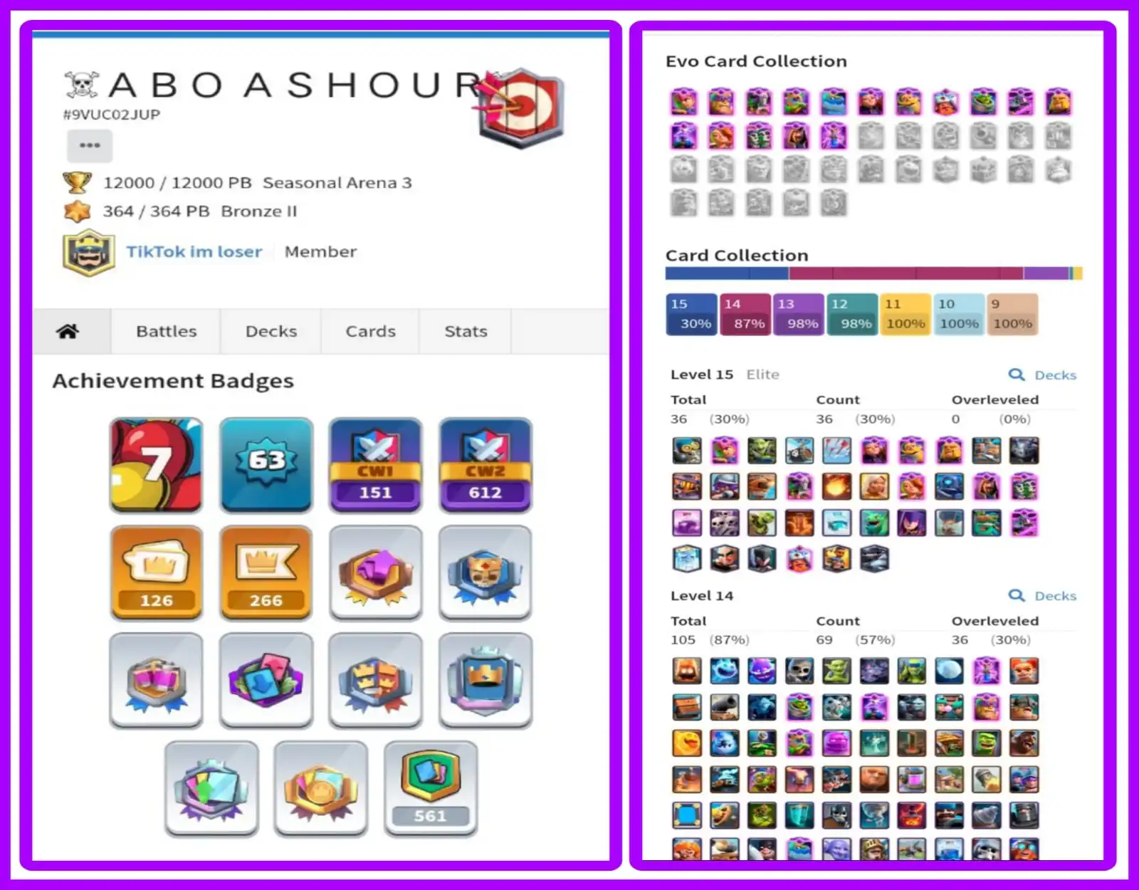**LVL 63 | 12,000 Trophies 🏆 | 105 Max Cards ⚡ | 36 Elite 💎 | 7 Year Old 🎯 | Stacked Magic Items ✨ & Banners 🏳️ | Instant Delivery ⚡**