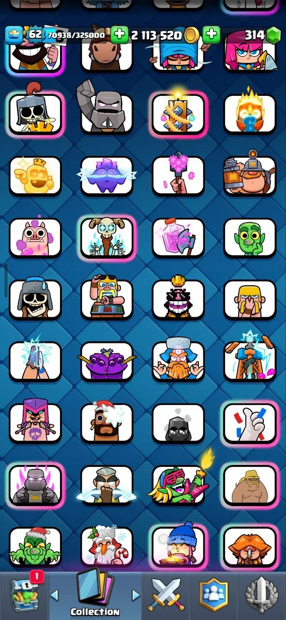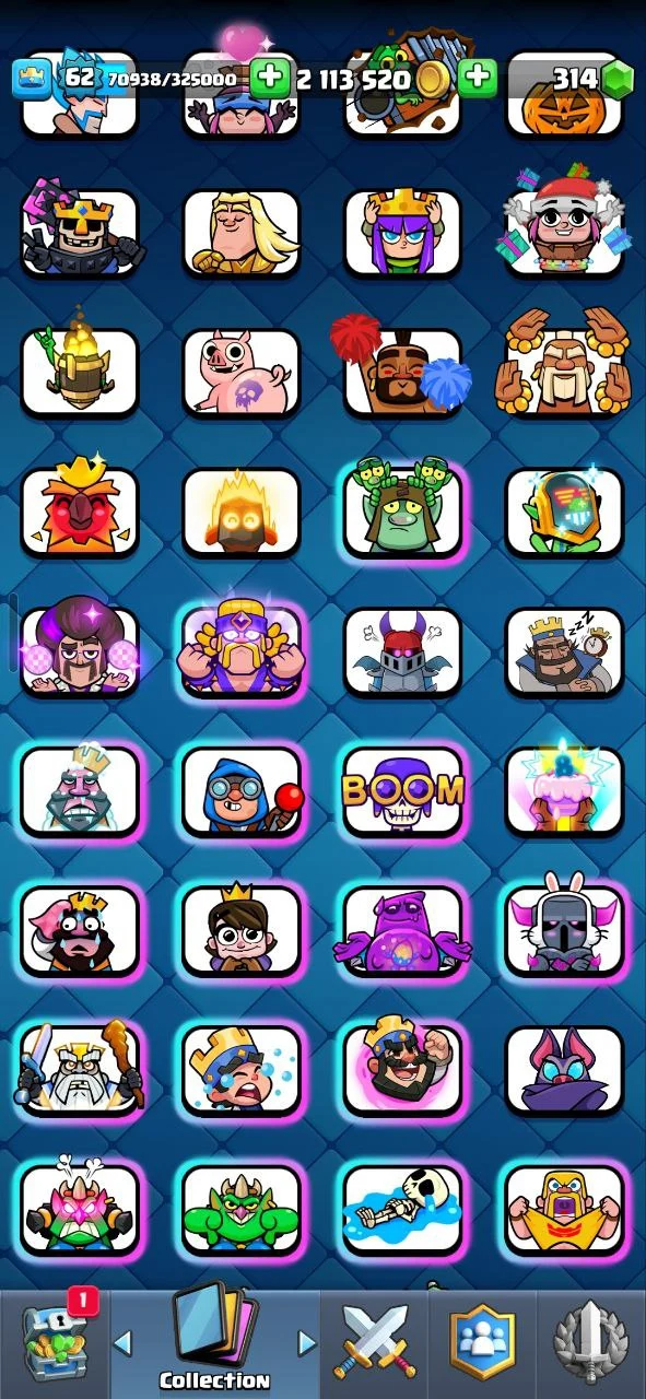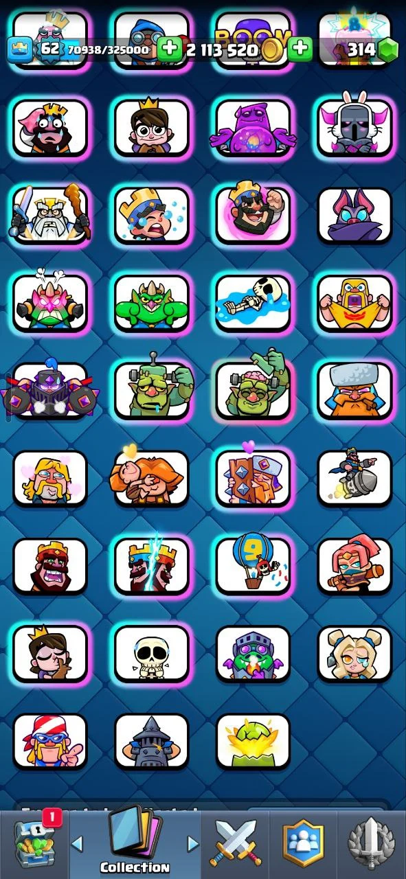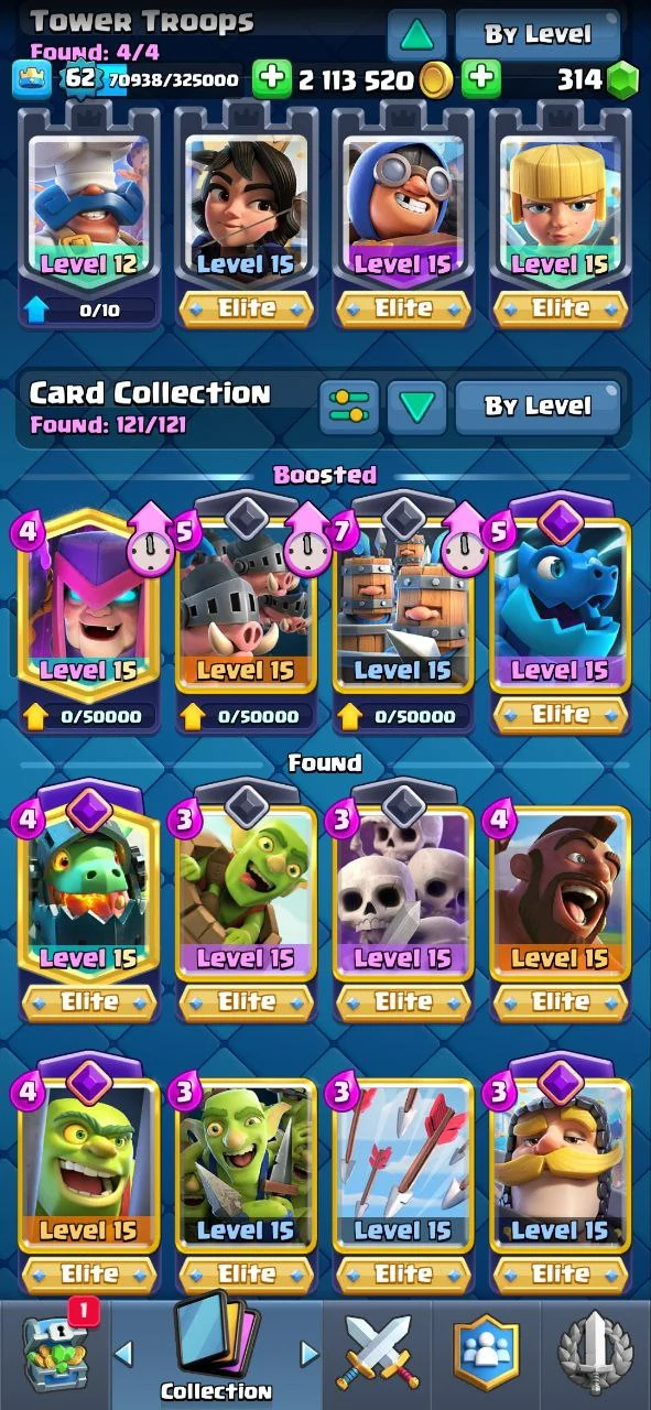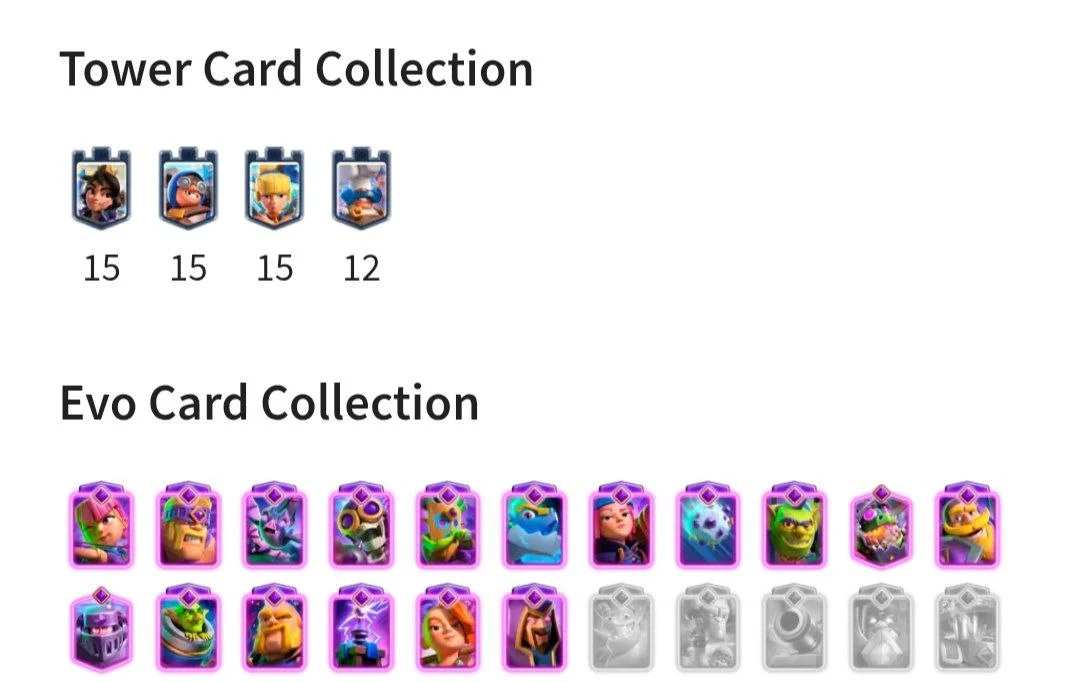 🌟 MAXED KT 15 & ALL CARDS 💎 11500 TROPHIES 🏆 17 EVOLUTIONS 😈 29 ELITE CARDS 👑 62 XP 🎯 RARE EMOTES ✨️ EXCLUSIVE BANNERS & DECORATIONS 🏅 NAME & PLAYER ID CHANGEABLE ✅️ TOWER TROOPS ELITE 🔥 CHEAPEST ☄️ INSTANT DELIVERY 🚚