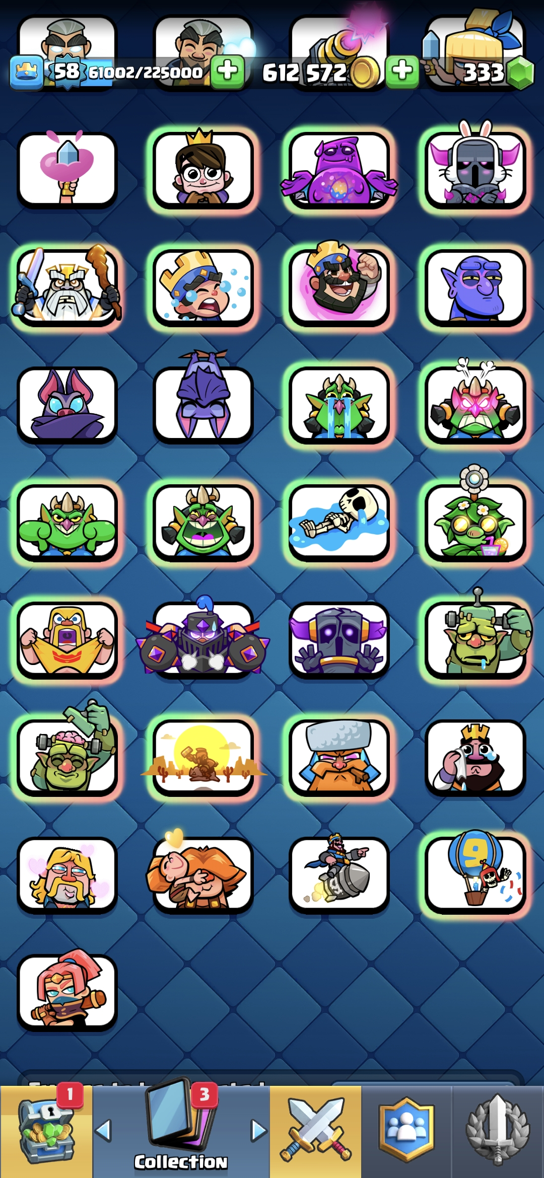 ✨ RARE ✨ KT 15 🔱 LVL 58 🏆 CUPS[9000] ✨ MAX CARDS [34] ✨ ELITE [19] ✨ EVO [11] ✨ LVL 14 [15] ✨ EMOTES [77] 🔱 CARDS [119] ✨ FREE NAME CHANGE✨ 10000% SAFE