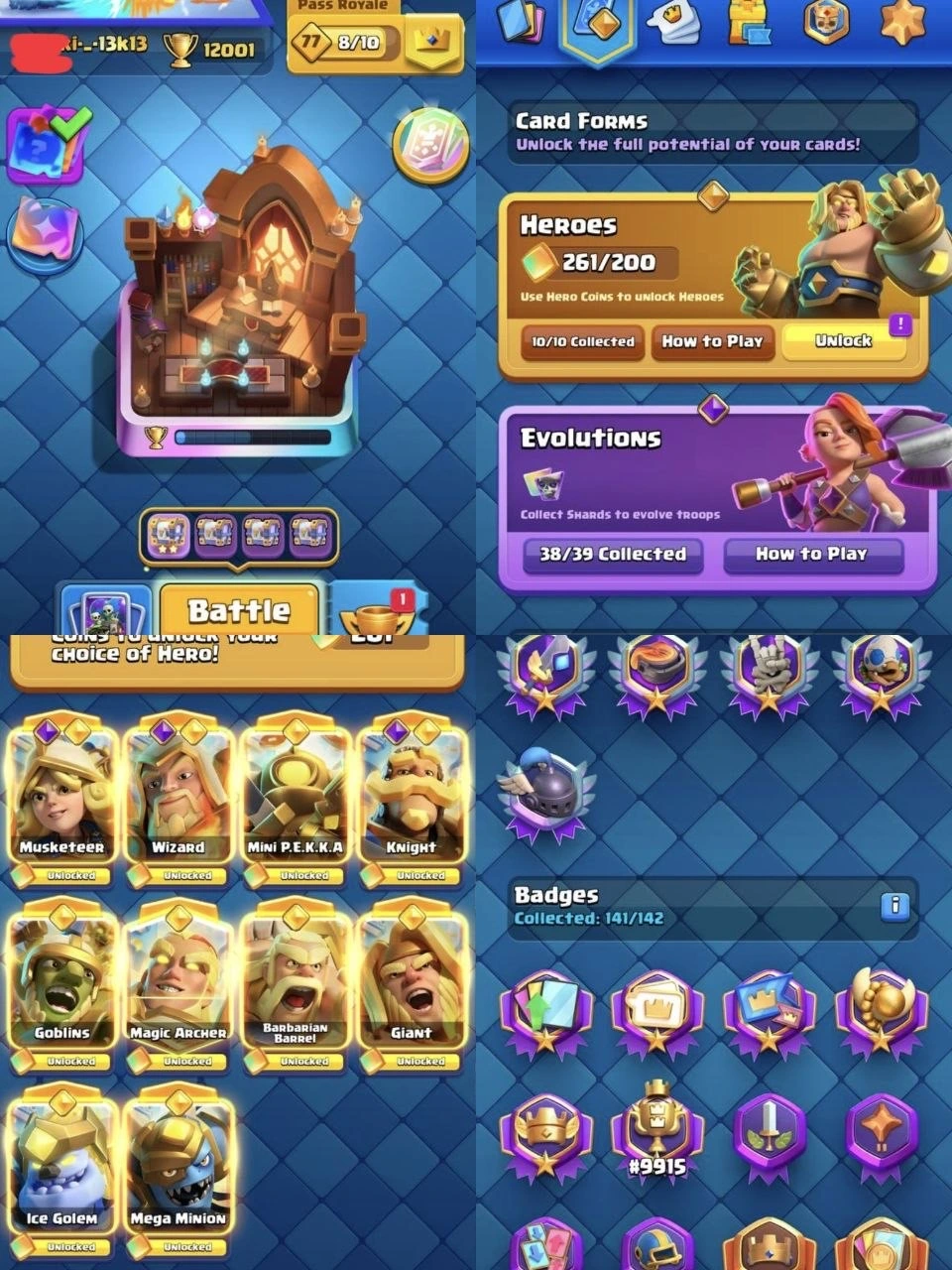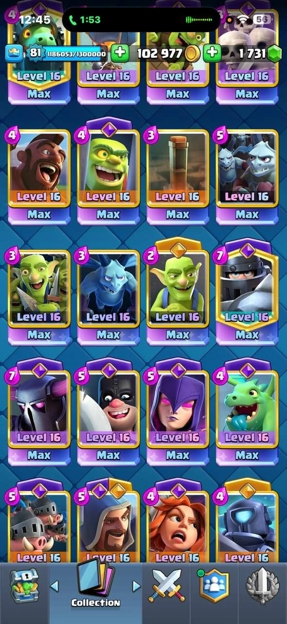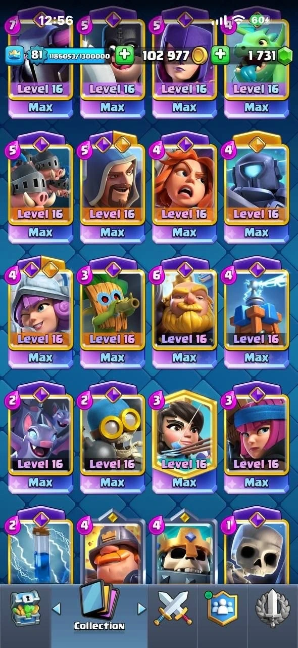UC #2043 ⚡️{ 10 YEAR OLD + 12K TROPHY + FULL 121 MAX } CRL #1 KT16 75 ELITES 32 LEVEL 16 CARDS 14 LEVEL 14 & 38 MAXED EVOS ARENA 29 XP 81 RAREST 318 EMOTES & ALL HEROES MAXED FRAMES BADGES 30+ TOWER SKINS INSTANT DELIVERY 🚚