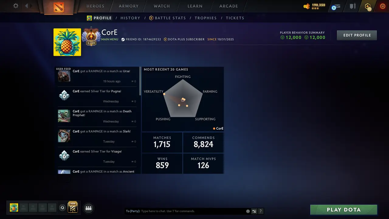 10359 MMR ⸱ Immortal ⸱ Fast search(Main pool) ⸱ 12000 behavior ⸱ 1715 matches ⸱ Original email