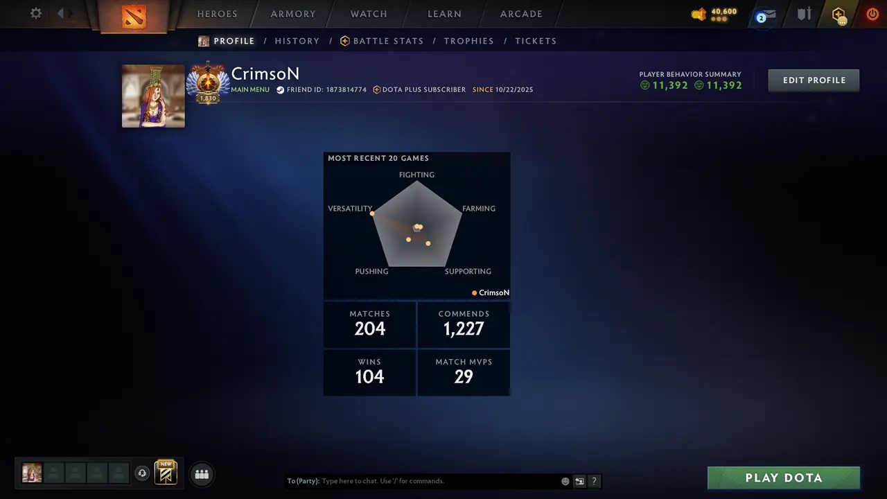 10703 MMR ⸱ Immortal ⸱ Calibrated ⸱ 11392 behavior ⸱ 206 matches ⸱ Original email
