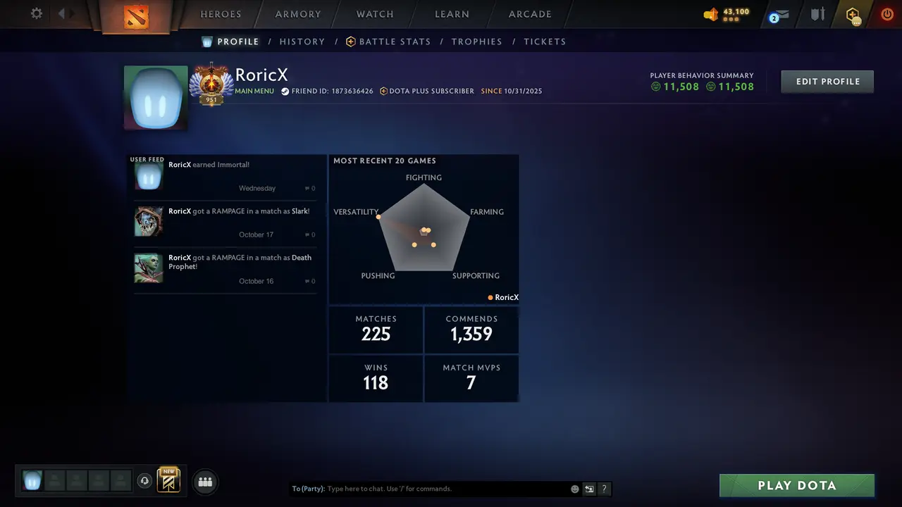 12053 MMR ⸱ Immortal ⸱ Calibrated ⸱ 11508 behavior ⸱ 236 matches ⸱ Original email