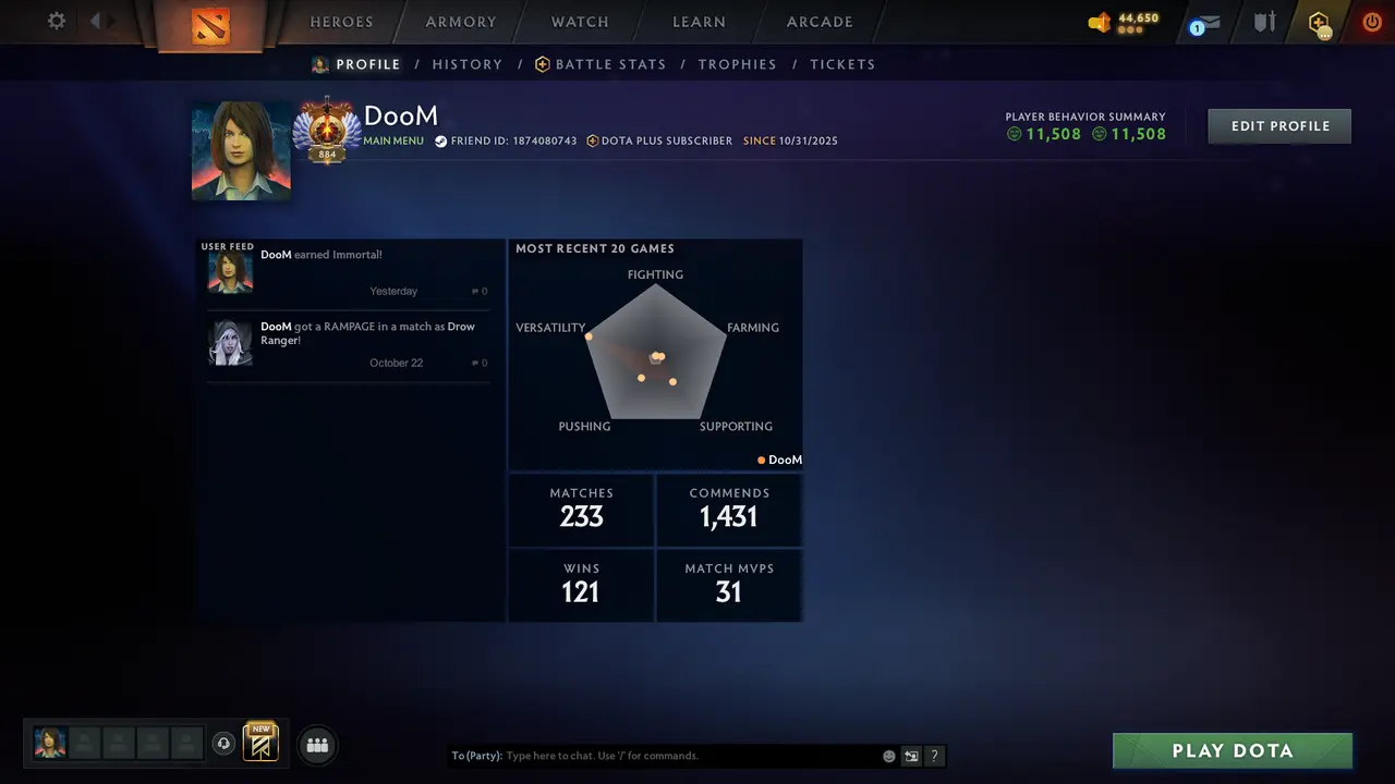 12241 MMR ⸱ Immortal ⸱ Calibrated ⸱ 11508 behavior ⸱ 233 matches ⸱ Original email