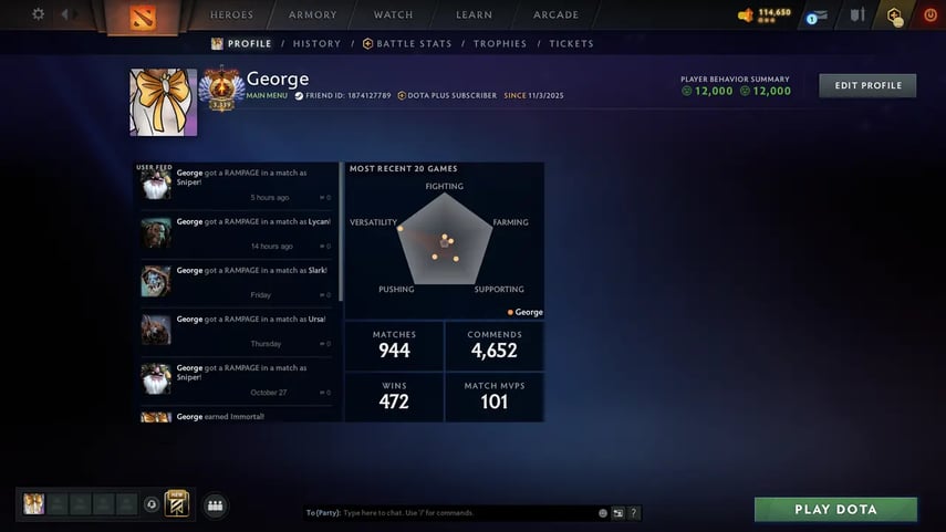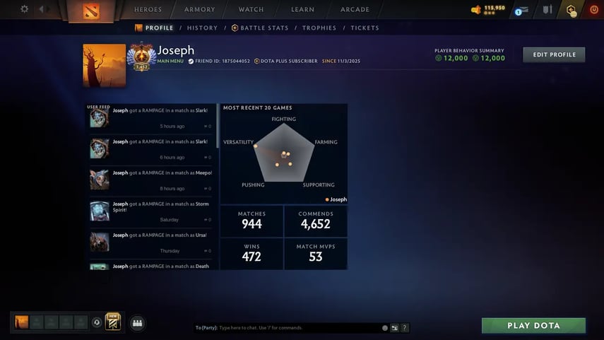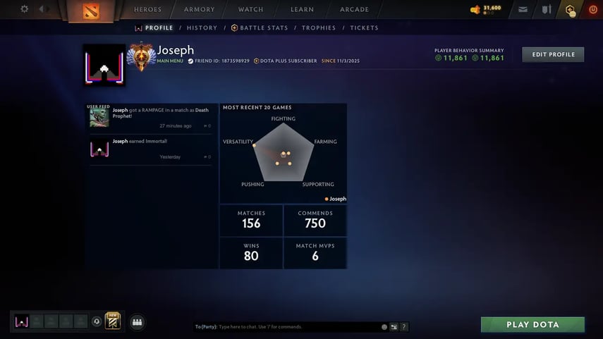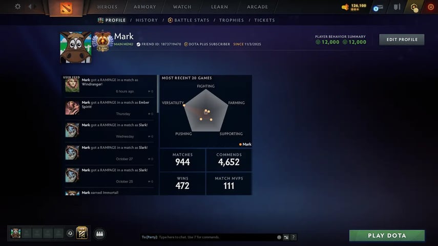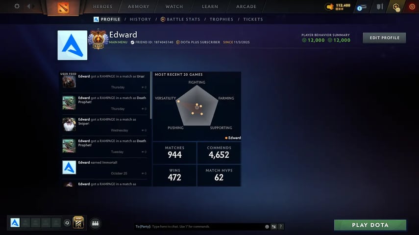 6020 MMR ⸱ Immortal ⸱ Fast search(Main pool) ⸱ 12000 behavior ⸱ 807 matches ⸱ Original email