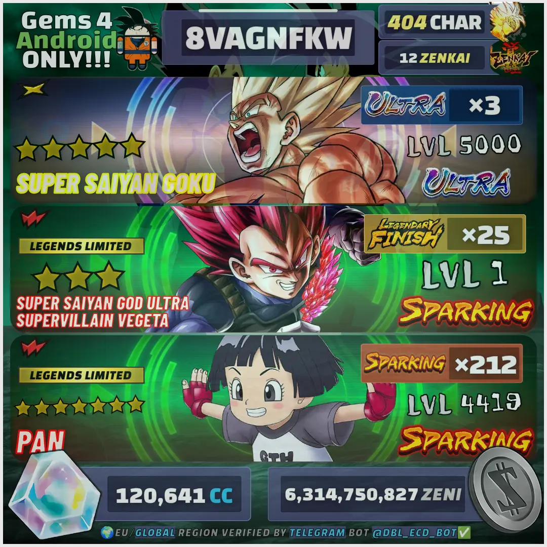 👑 WHALE Legends Collection: [📱 Platform: Android, 👤 Characters: 404, 🌟 Ultra: 3, ⚔️ Sparking: 212, 💎 Crystals: 120641, 👑 Limited: 25, ⚡ Zenkai: 12] ⸱ PREMIUM COLLECTION | GUARANTEED SAFE !AGG02532