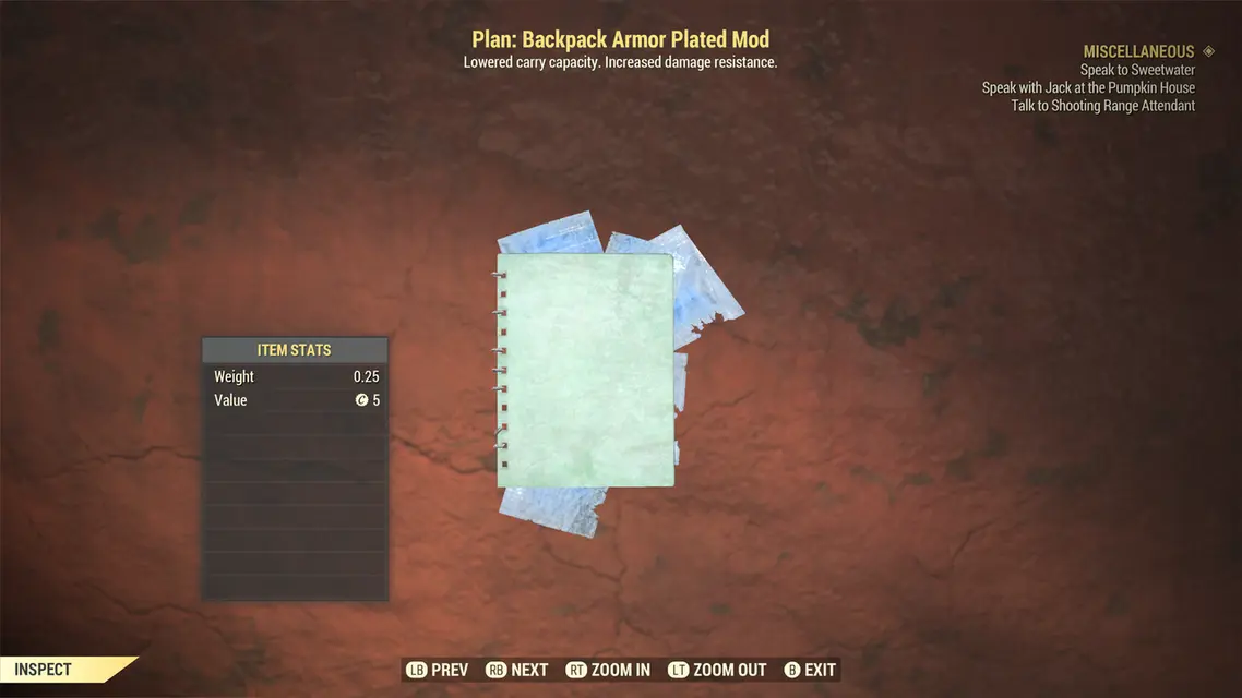 [ Xbox ] Plan: Lead Lined Backpack Mod (instant delivery)
