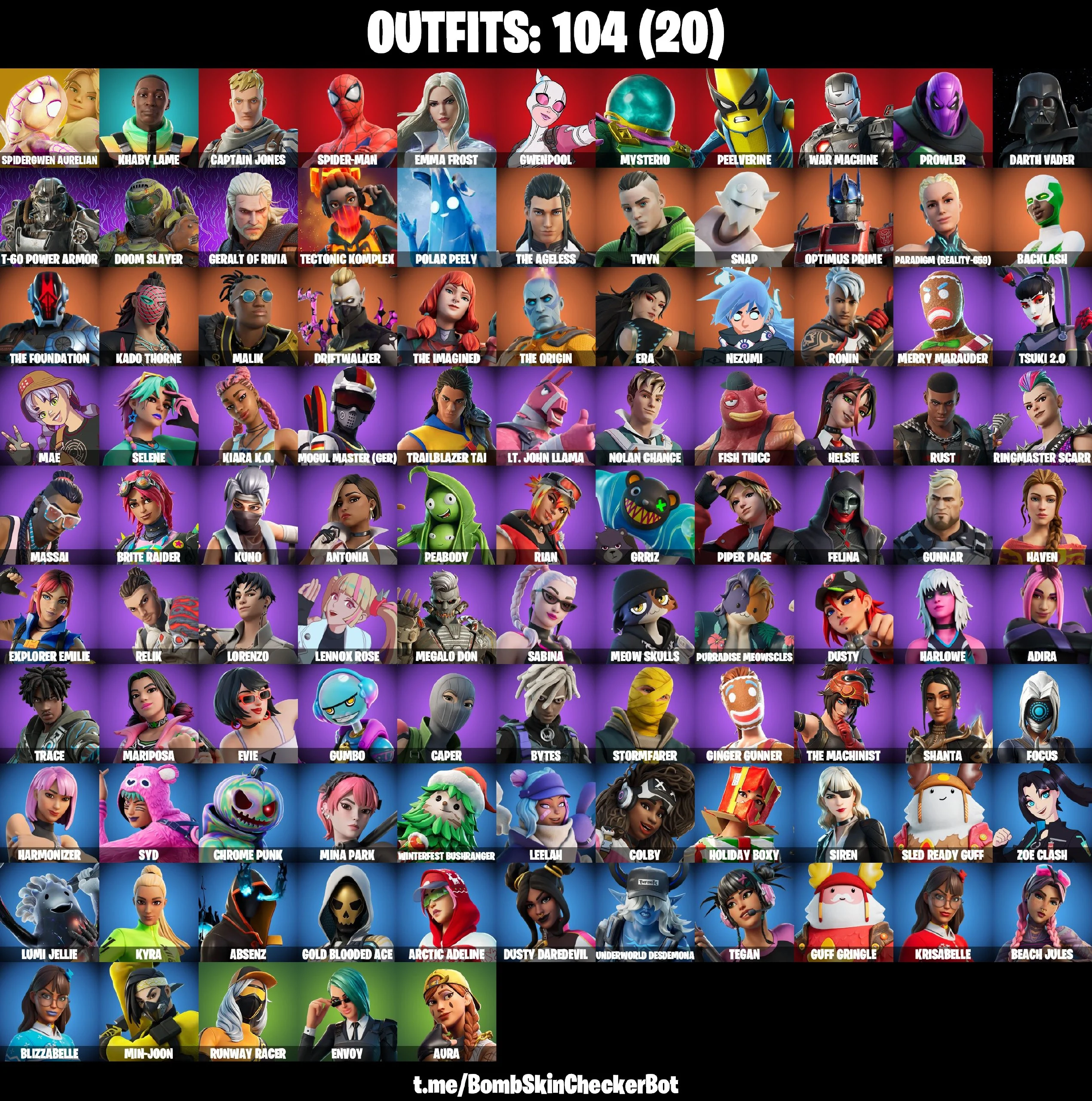 104 SKINS | Spider-Gwen | Darth Vader | Merry Marauder | Tsuki 2.0 | Mogul Master (GER) | Caper | Blizzabelle