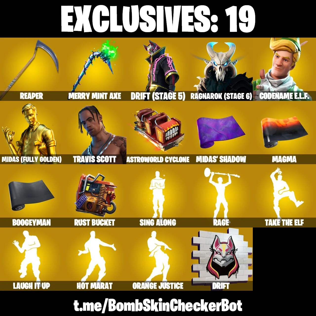 【 115 SKINS 】 TRAVIS SCOTT ❤️ GOLD MIDAS ❤️ REAPER ❤️ MERRY MINT AXE ❤️ (PC/PSN/XBOX)