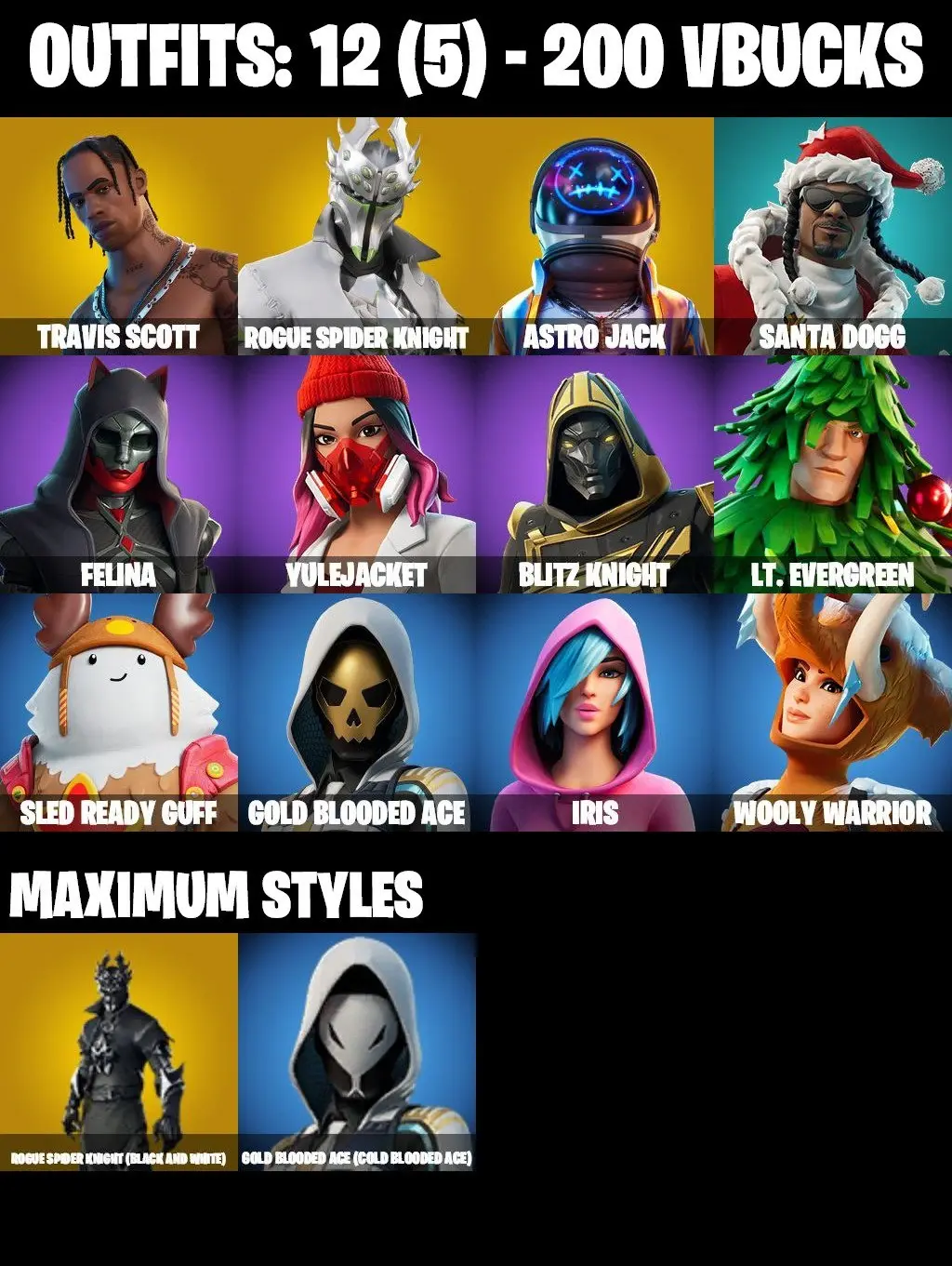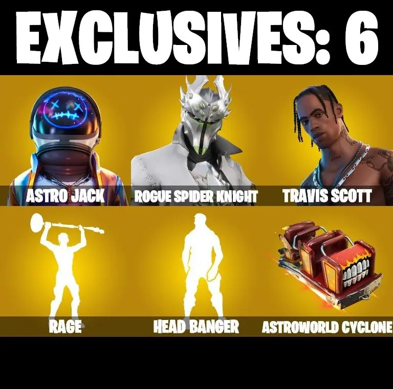 12 SKINS | TRAVIS SCOTT | ASTRO JACK | ROGUE SPIDER KNIGHT MAX | RAGE | HEAD BUNGER | PEPPERMINT PICK | CAN PLAY ON PSN,XBOX,PC,NINTENDO,MOBILE | 200 VBUCKS | FULL EMAIL ACCESS