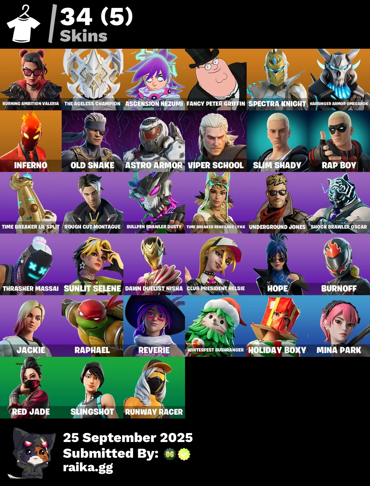 ðĨ130$ spent [PC/PSN/XBOX/NINTENDO] 34 skins | Rap Boy | Get Griddy | Burning Ambition Valeria | The Ageless Champion | Ascension Nezumi mssh356