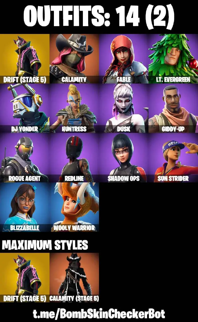 14 Skins✅ Hot Marat, Rogue Agent, Rust Bucket, Crowbar, Orange Justice, Snowflake, Blizzabelle, DJ Yonder✅ 500 Vbucks✅Mail Changeable✅PC/PSN/XBOX✅