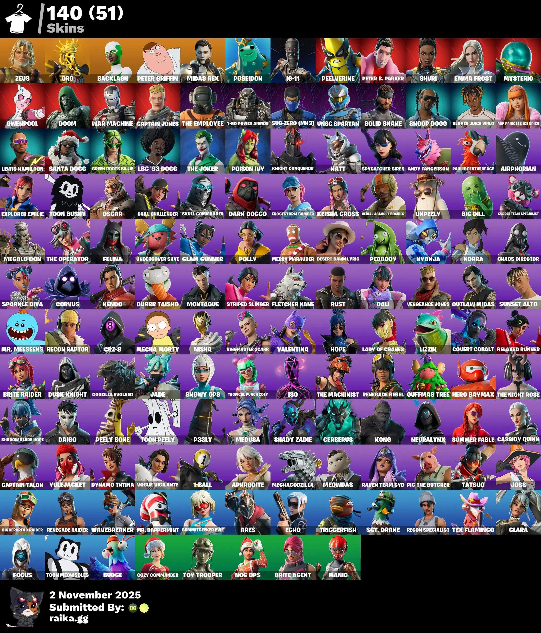 👑140 TOP SKINS👑 🎮🔗 RENEGADE RAIDER ✅ RAIDER'S REVENGE ✅ LEWIS HAMILTON ✅ POISON IVY ✅ THE JOKER ✅ GREEN ROOTS BILLIE ✅ LBC '93 DOGG