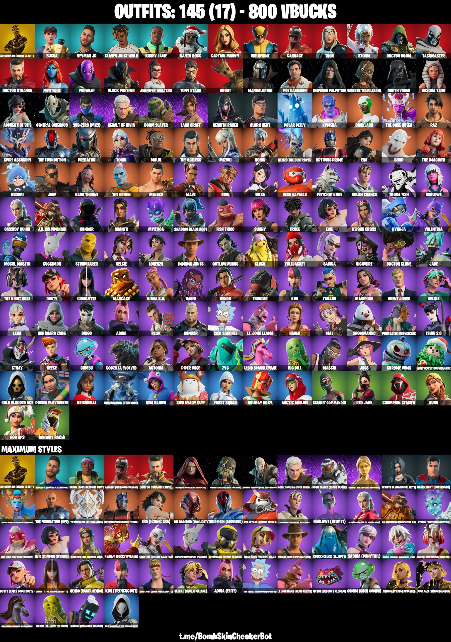 ðŪ145 SkinsðŪ Laugh It UpðPele's Air PunchðStar WandðHarley HitterðTony StarkðDarth VaderðBacklashðLara CroftðNeymar JrðAuraðErisaðClark KentðPolar PeelyðKrisabelleðDoctor Strange