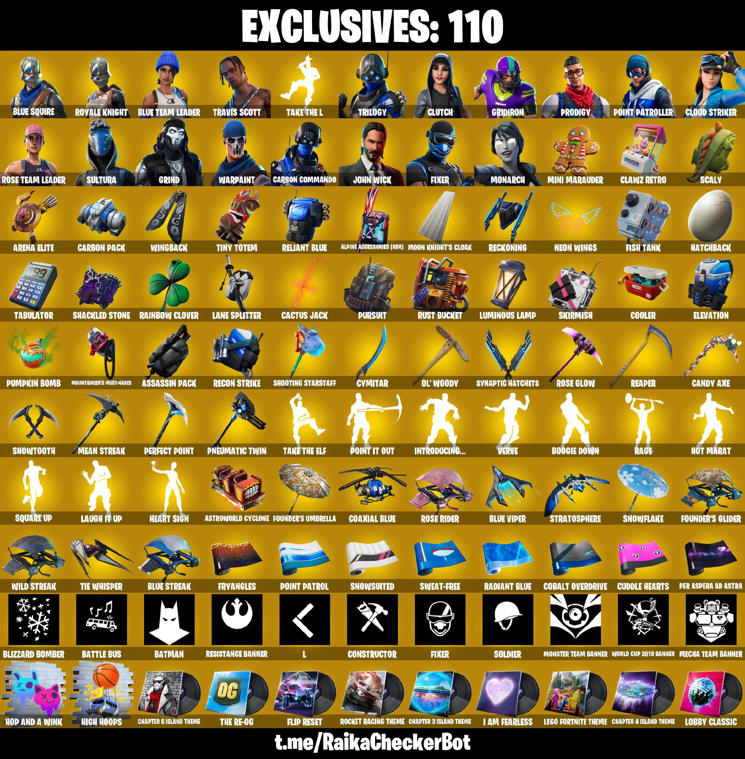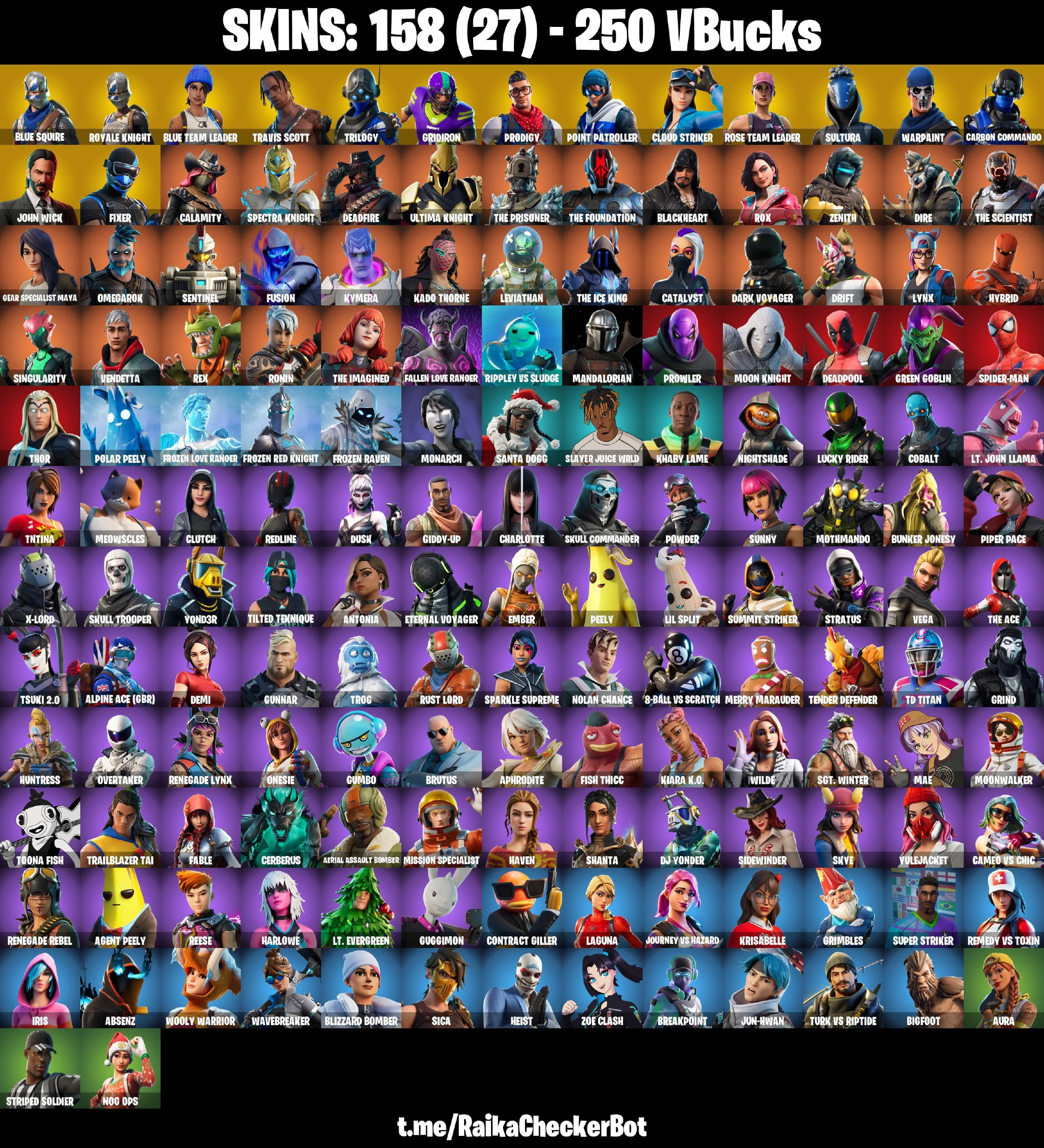158 skins 🔷 Travis Scott 🔷 Royale Knight 🔷 Blue Squire 🔷 Take The L 🔷 Trilogy 🔷 Gridiron 🔷 Prodigy 🔷 Point Patroller PSN/XBOX/PC