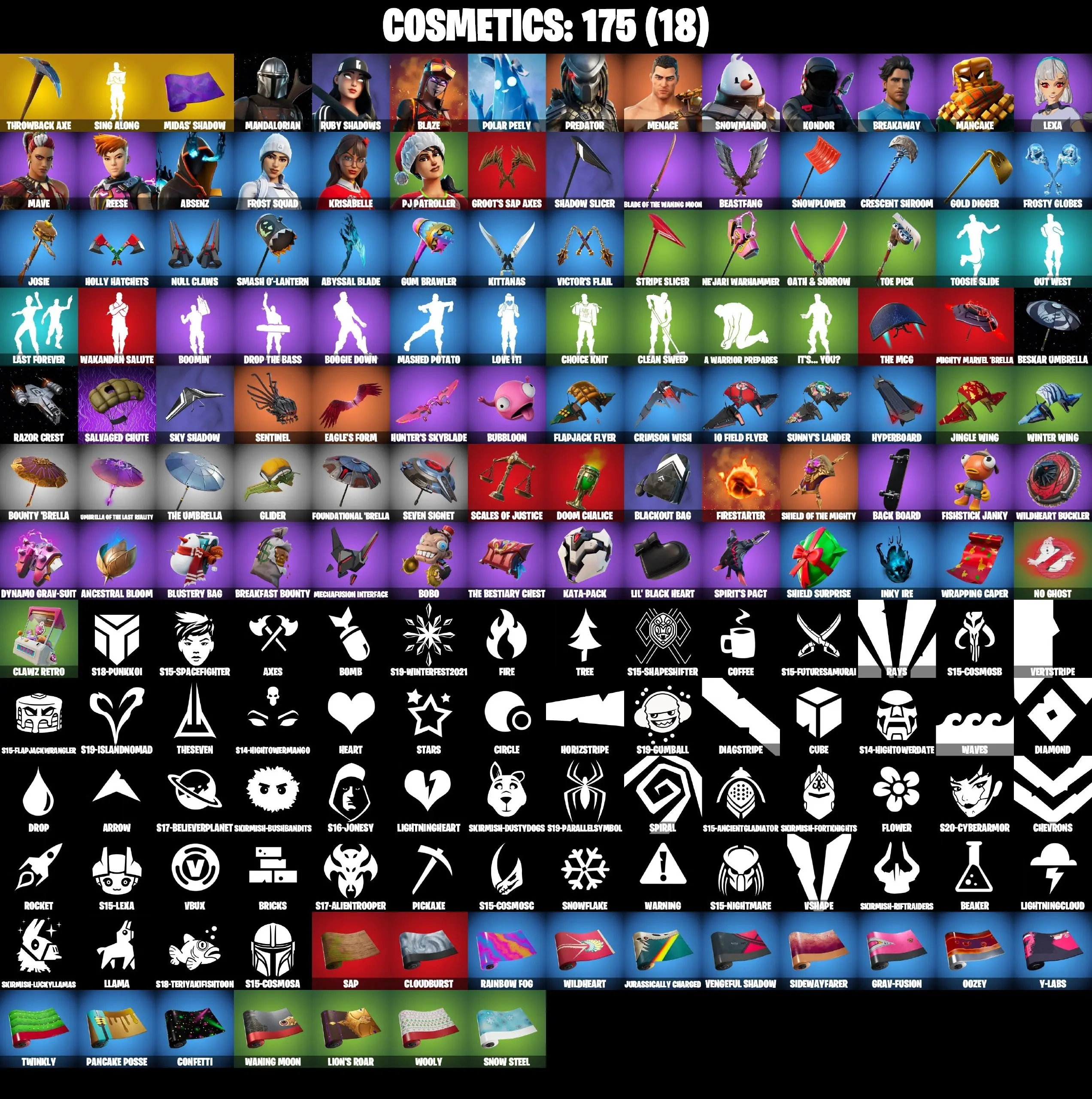 ❤️ 17 SKINS ❤️ 175 cosmetics ❤️ throwback axe ❤️ Mandalorian ❤️ Ruby Shadows ❤️ Blaze ❤️ Polar Peely ❤️ Predator ❤️ CAN PLAY ON PSN ❤️ XBOX ❤️ PC ❤️ NINTENDO ❤️ MOBILE ❤️