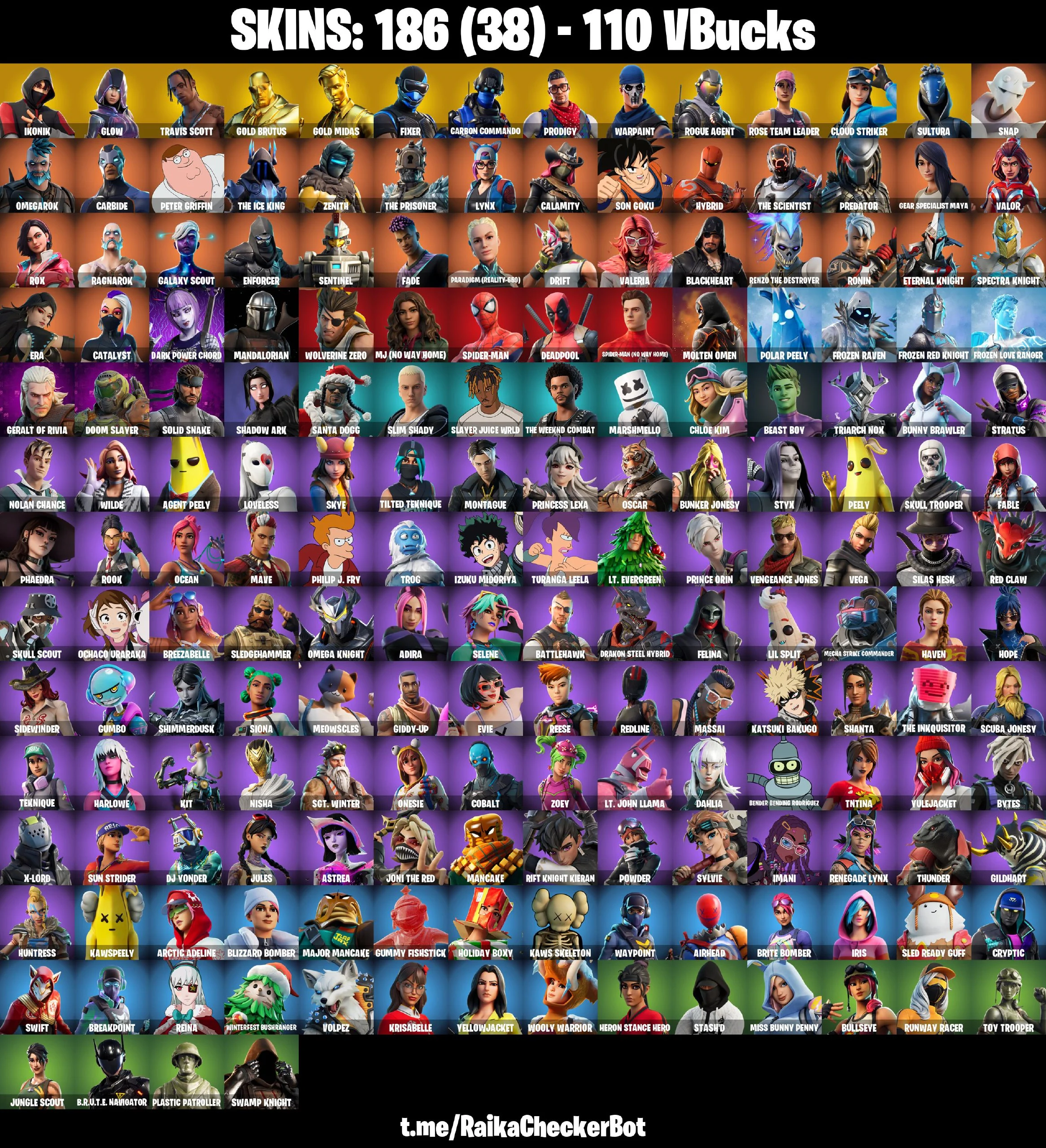 186 skins 💞 IKONIK ❤️ Travis Scott 💕 Glow 💖Scenario 💘 Gold Brutus 💘 Gold Midas 💝 Scenario ⭐ Carbon Commando 💞 Prodigy ❤️ Rogue Agent 💓 Cloud Striker 💗 [PSN/XBOX/PC]