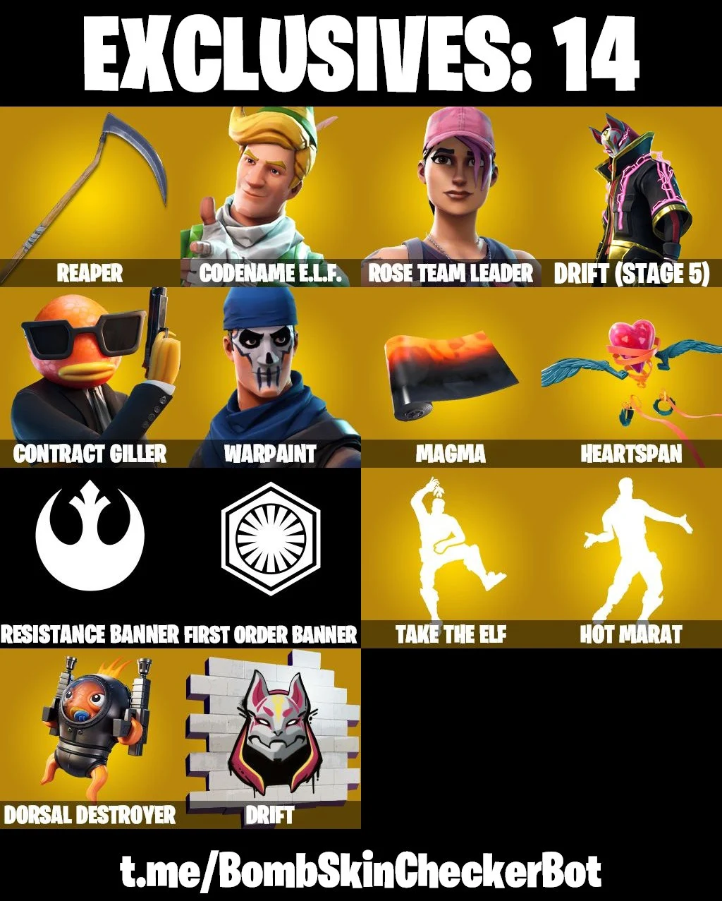 【 198 SKINS 】 DRIFT ❤️ WARPAINT ❤️ ROSE TEAM LEADER ❤️ REAPER ❤️ (PC/PSN/XBOX)