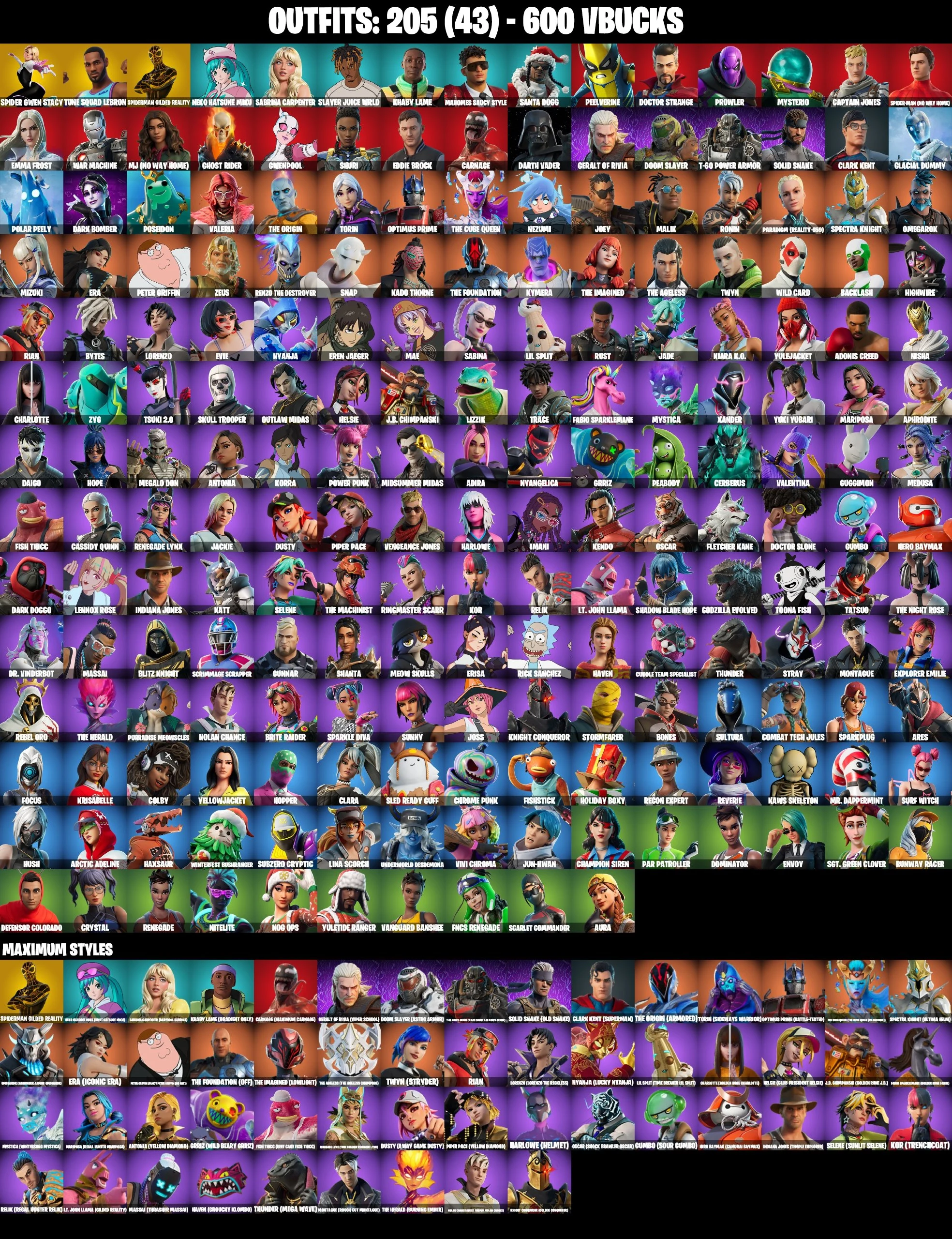 👑205 Skins 👑PC/PSN/XBOX👑 Spidergwen (Stacy) 👑 Tune Squad LeBron 👑 Neo's Bullet Time 👑 Leave The Door Open 👑 The Silencer 👑 Eren Jaeger 👑 Backlash👑