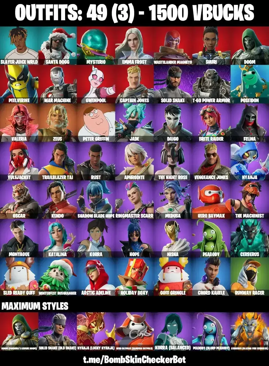 49 SKINS | MEDUSA | APHRODITE | ZEUS | HOPE | NISHA | OSCAR | KATALINA | SLAYER JUICE WRLD | PEELY WHIP | CAN PLAY ON PSN,XBOX,PC,NINTENDO,MOBILE | 1500 VBUCKS | FULL EMAIL ACCESS