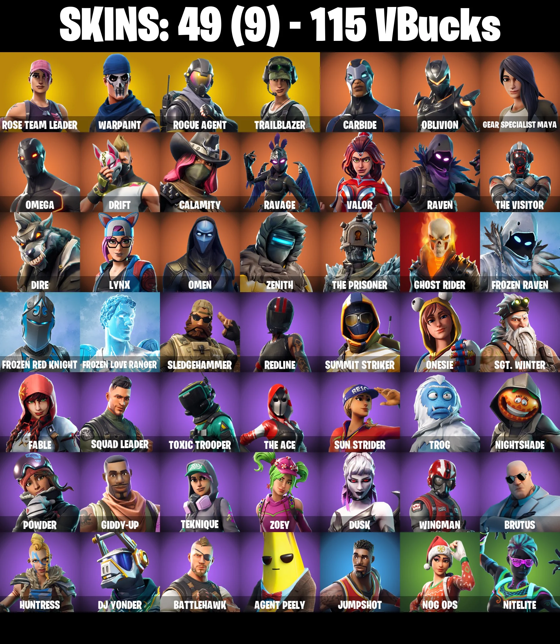 🎆49 SKINS ⚡️PC⚡️ ROGUE AGENT 👑 TRAILBLAZER 👑 CARBIDE 👑 OBLIVION 👑 GEAR SPECIALIST MAYA 👑 OMEGA 👑 DRIFT 👑 CALAMITY 👑 RAVAGE 👑 VALOR 👑 RAVEN ⚡️ 115 VB #M470