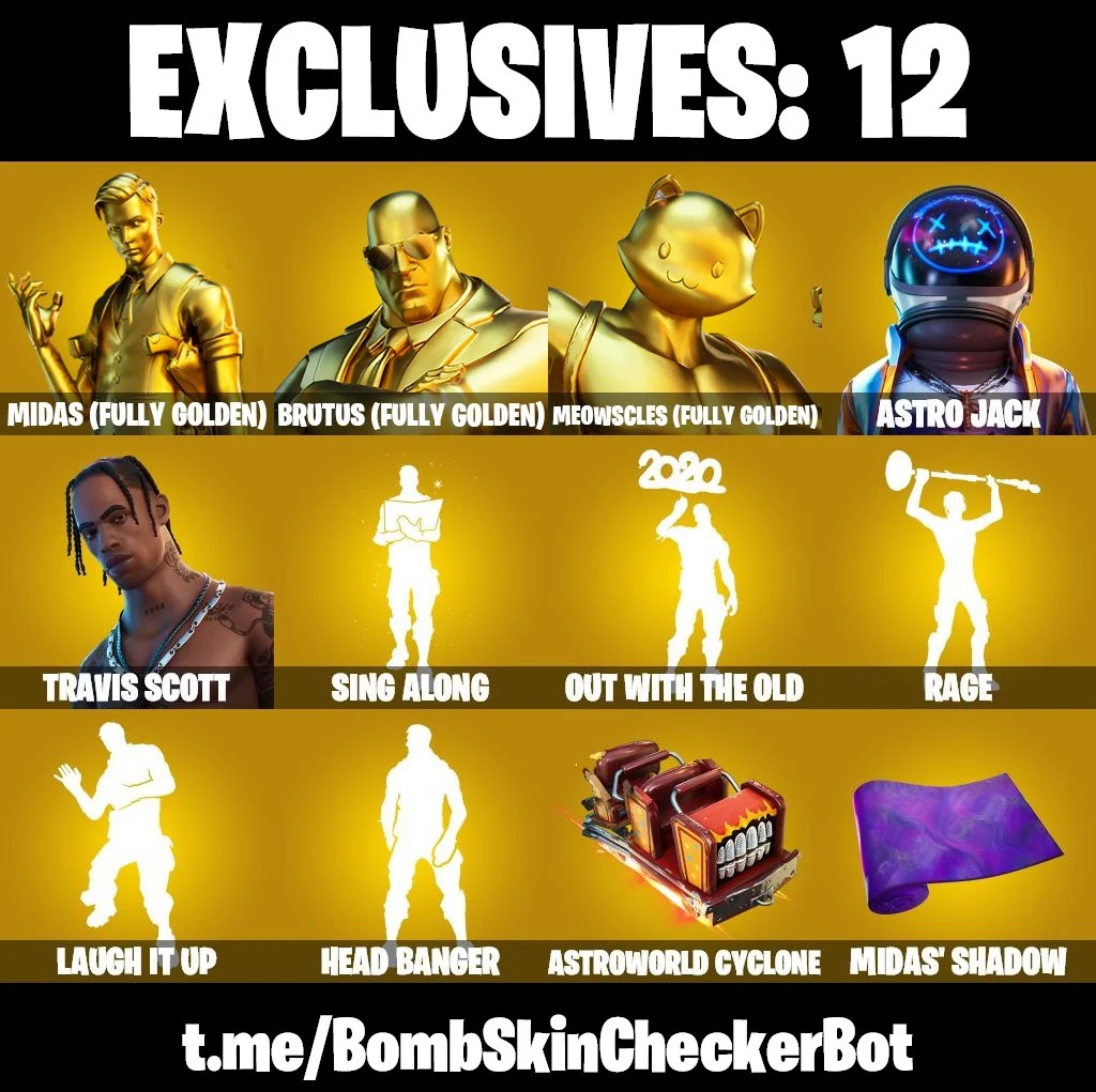 【 57 SKINS 】 TRAVIS SCOTT ❤️ GOLD BRUTUS ❤️ ASTRO JACK ❤️ GOLD MIDAS ❤️ (PC/PSN/XBOX)