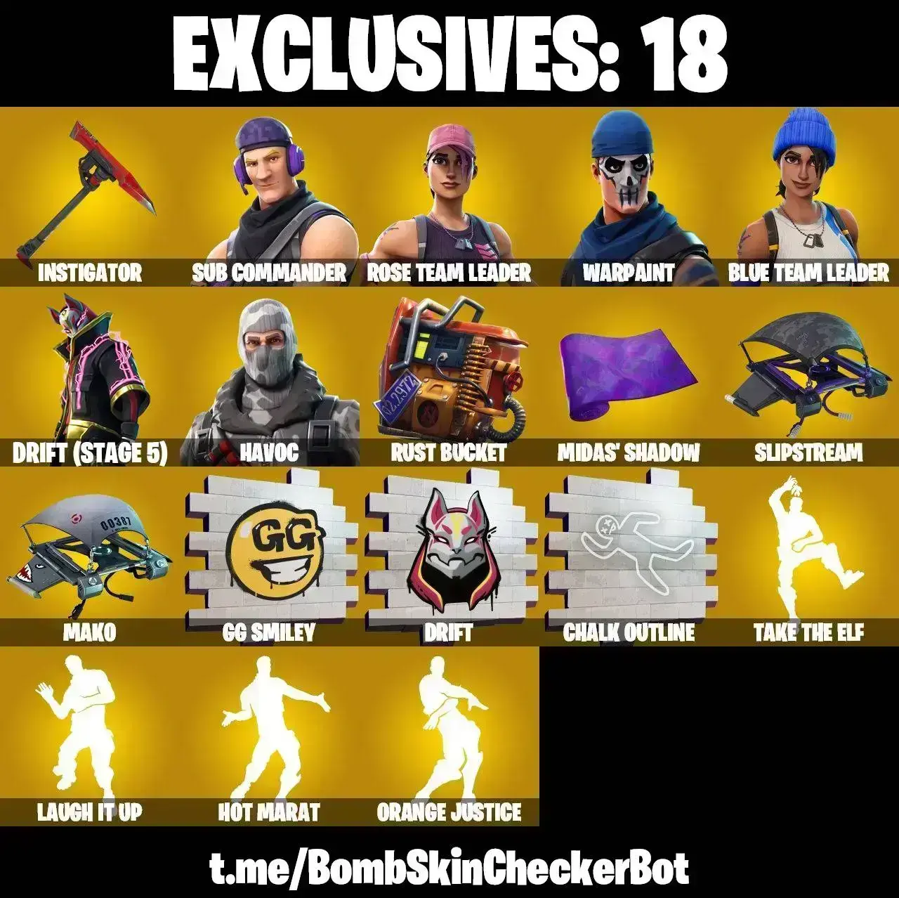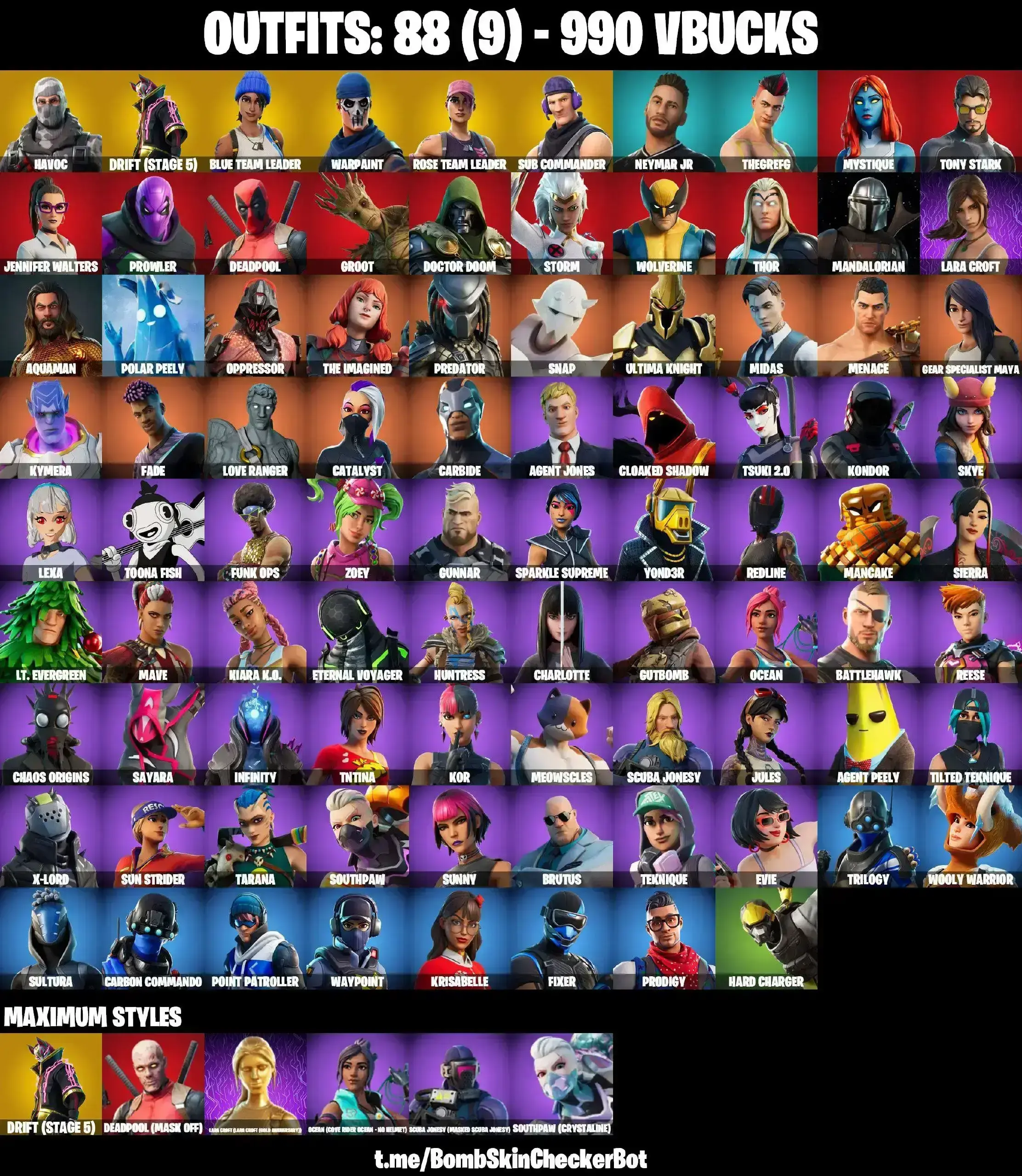 88 SKINS | MAKO | OG STW | HAVOC | SUB COMMANDER | GOLDEN LARA CROFT | MANDALORIAN | ORANGE JUSTICE | LAUGH IT UP | WINDMILL FLOSS | PREDATOR | MAYA | TSUKI 2.0 | ZOEY | CHARLOTTE | KOR | JULES | CHAOS ORIGINS | EVIE | AGENT PEELY