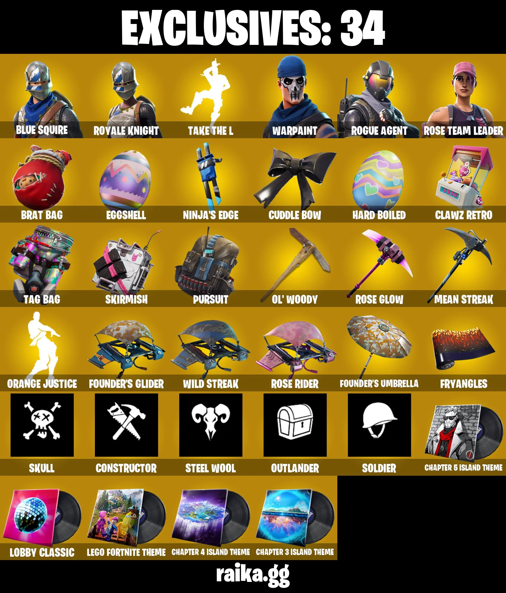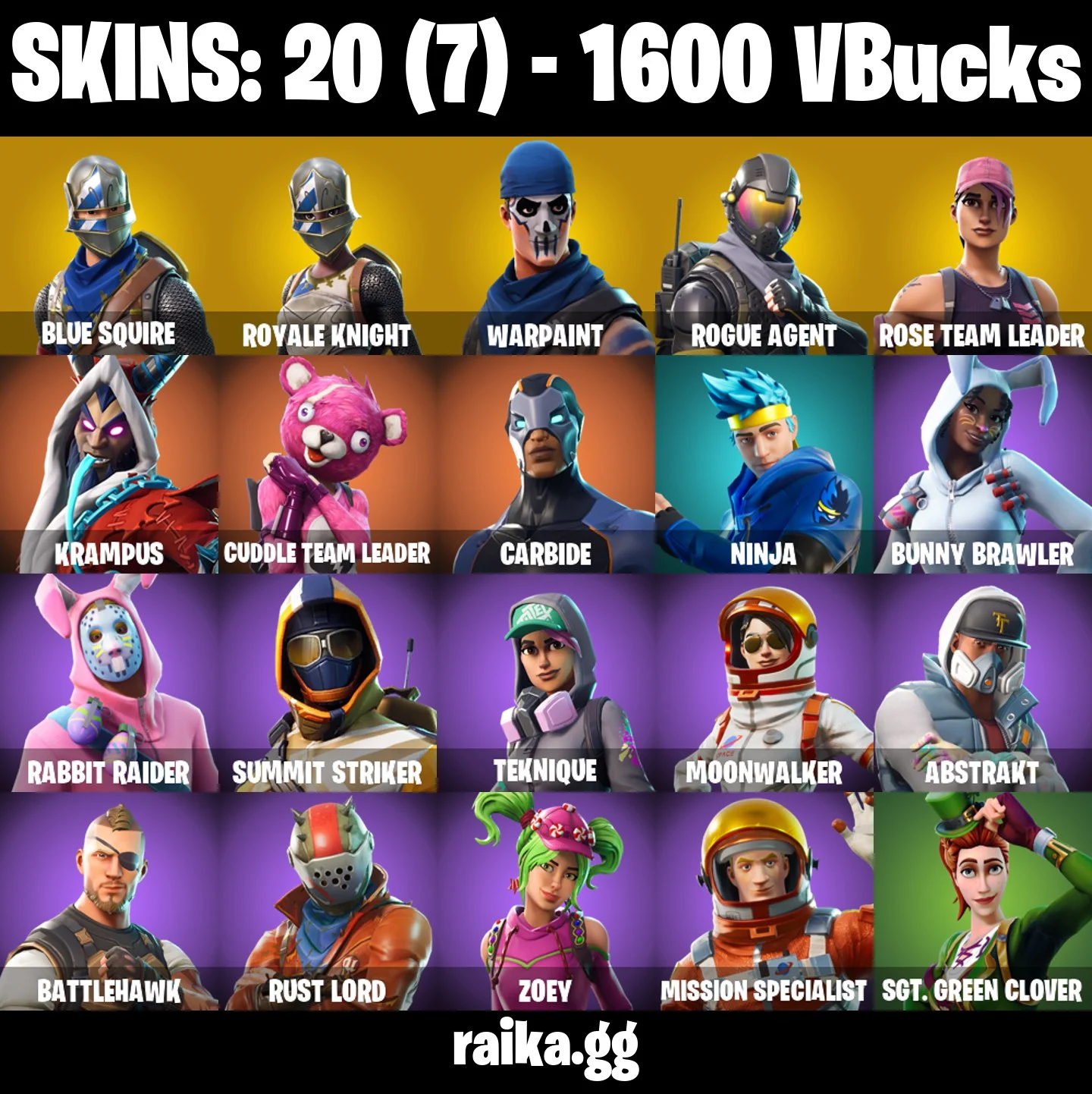 💥🌟💥 EXCLUSIVE OFFER 💥🌟💥 20 SKINS 💎 BLUE SQUIRE 💎 ROYALE KNIGHT 💎 TAKE THE L 💎 ROGUE AGENT 💎 CLAWZ RETRO 💎 SKIRMISH 💎 PURSUIT 💎 OL' WOODY 💎 ROSE GLOW 💎 FULL ACCESS