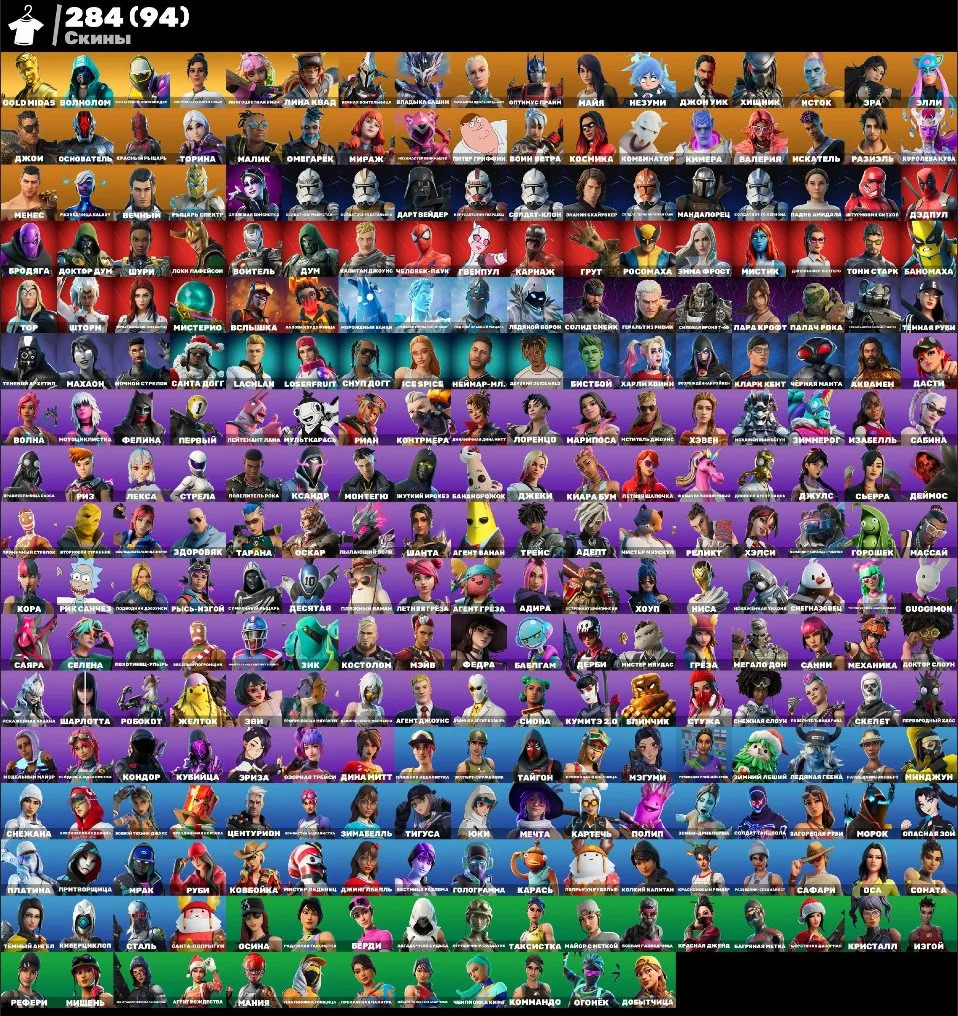 F819 284 Skins, Rare Exclusives, Ghoul, Leviathan, Harley, 1400 V-Bucks