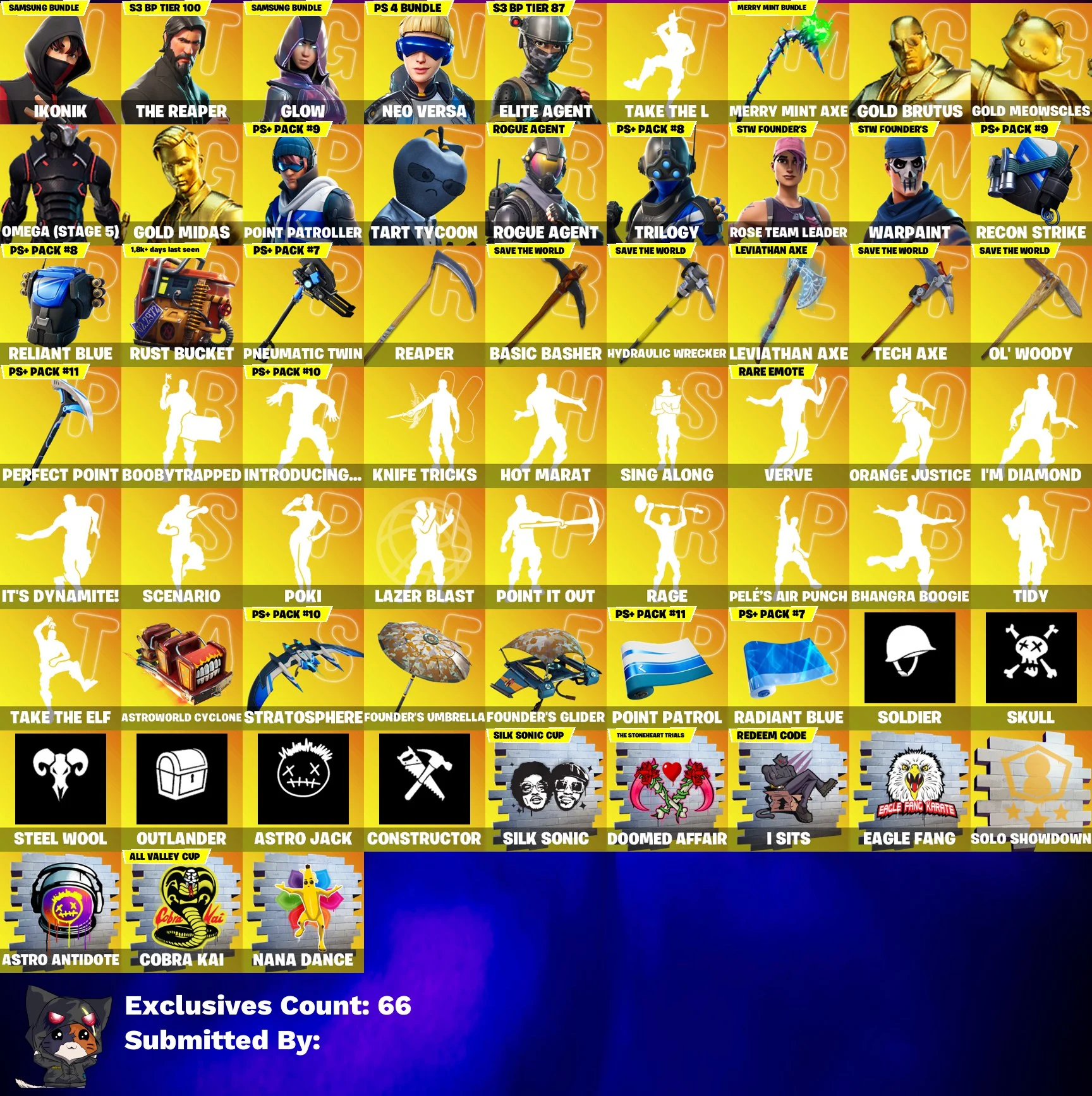 💥🌟 LEGENDARY ACCOUNT 🌟💥 263 SKINS 💎 IKONIK 💎 THE REAPER 💎 LEVIATHAN AXE 💎 TAKE THE L 💎 SCENARIO 💎 GLOW 💎 MERRY MINT AXE 💎 NEO VERSA 💎 ELITE AGENT 💎 GOLD BRUTUS 💎 GOLD MEOWSCLES 💎 OMEGA (STAGE 5) 💎 OG STW 💎 FULL ACCESS 💎
