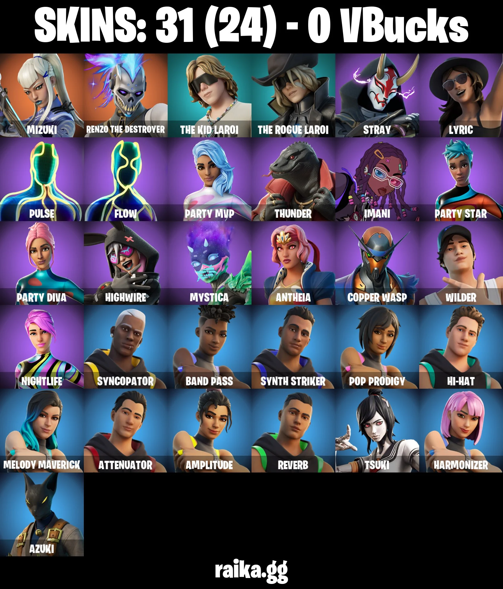 Original Email ✅ Inactive for 3 years | 31 skins | Mizuki | Renzo the Destroyer | The Kid LAROI | The Rogue LAROI | Stray | Lyric | Pulse | Flow | Party MVP | Thunder | Imani | Party Star | 0 VB