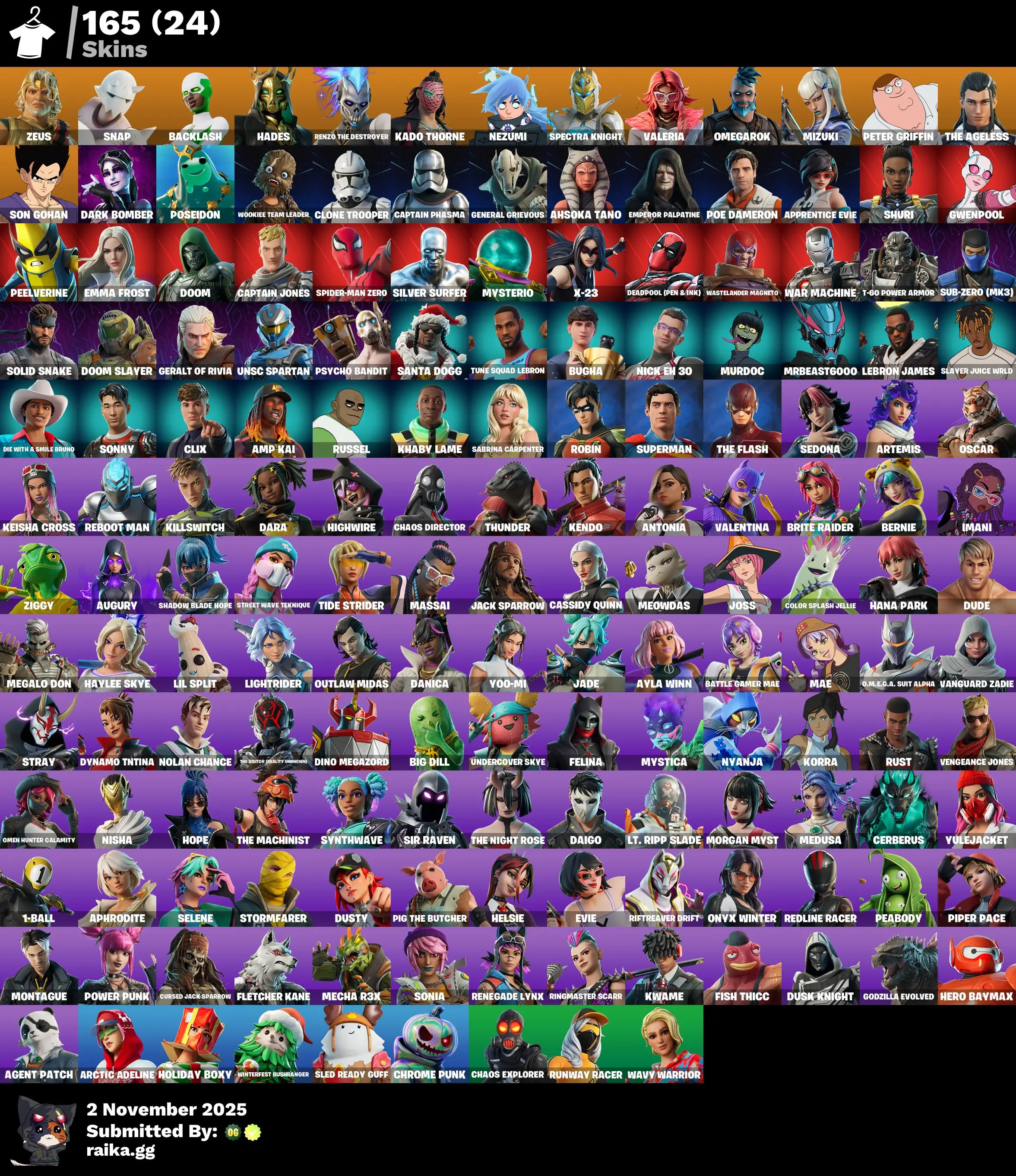 [PARENTAL CONTROL] 👑165 TOP SKINS👑 🎮🔗 BUGHA ✅ LEBRON JAMES ✅ TUNE SQUAD LEBRON ✅ MRBEAST6000 ✅ SILVER SURFER ✅ KHABY LAME ✅ NICK EH 30 ✅ SANTA DOGG ✅ SLAYER