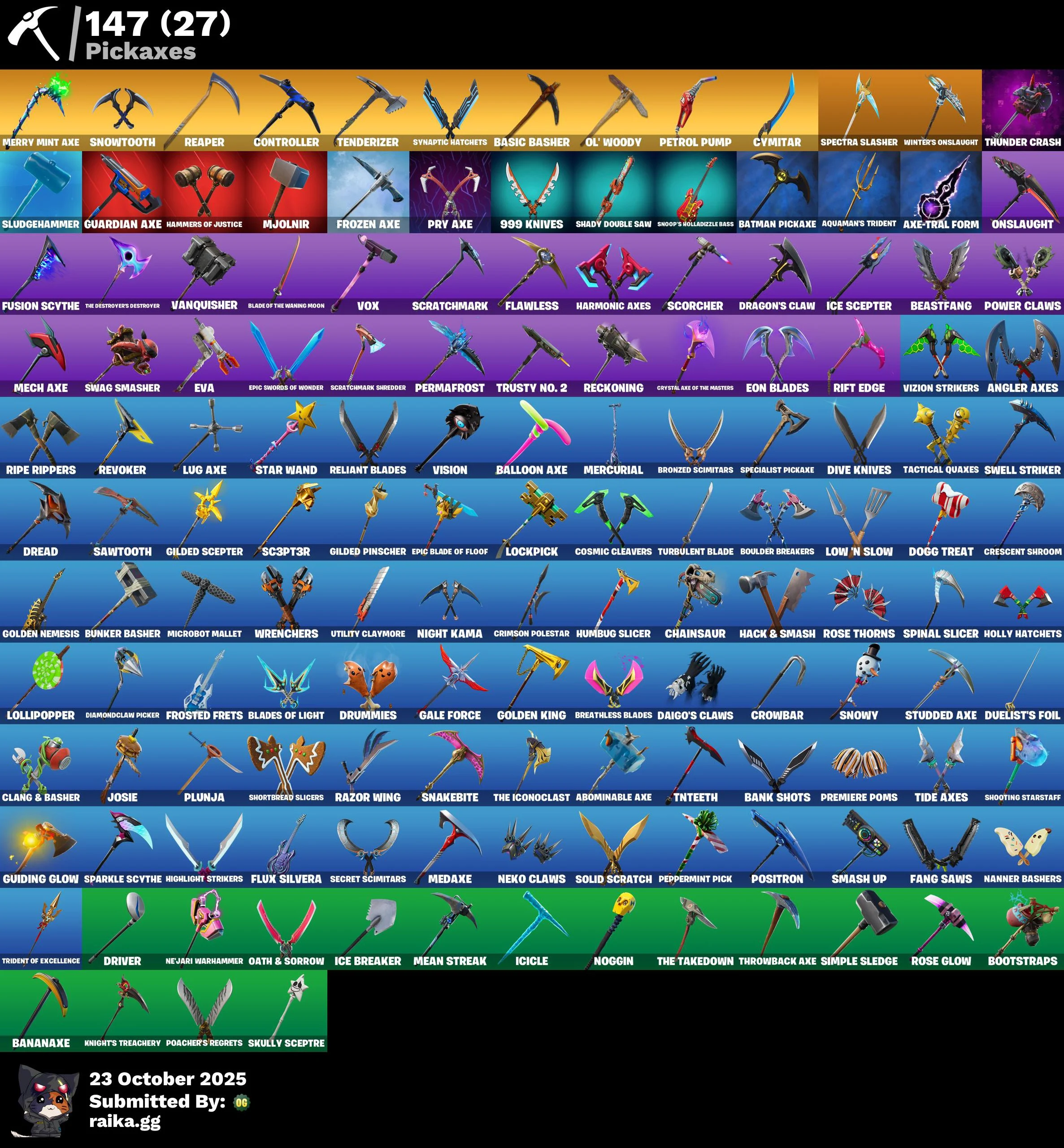 [PC] 184 skins | OG STW | Travis Scott | The Reaper | Take The L | Merry Mint Axe | Aura | Elite Agent	Mam61