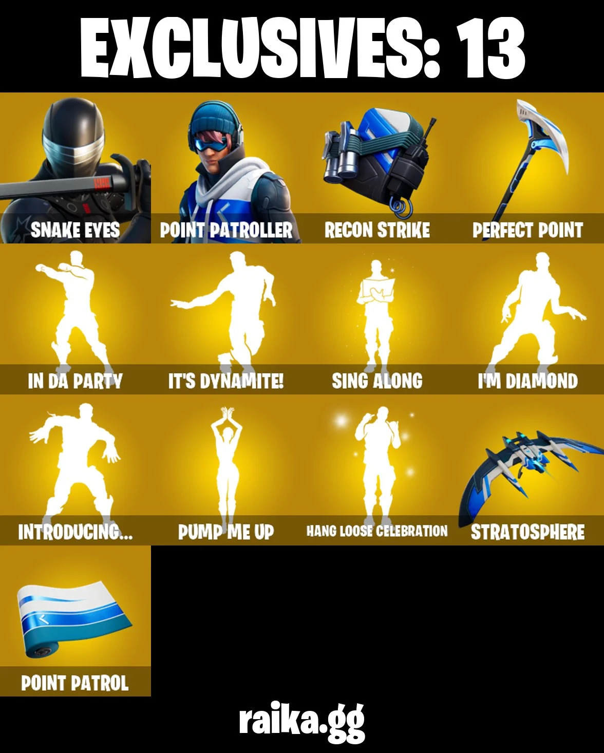 [PC] 💻 197 Skins👕 | Snake Eyes🐍 | Point Patroller🎯 | Vi💥 | Predator👽 | Optimus Prime🤖 | 13 Exclusives🏆 | 250 VBucks💸