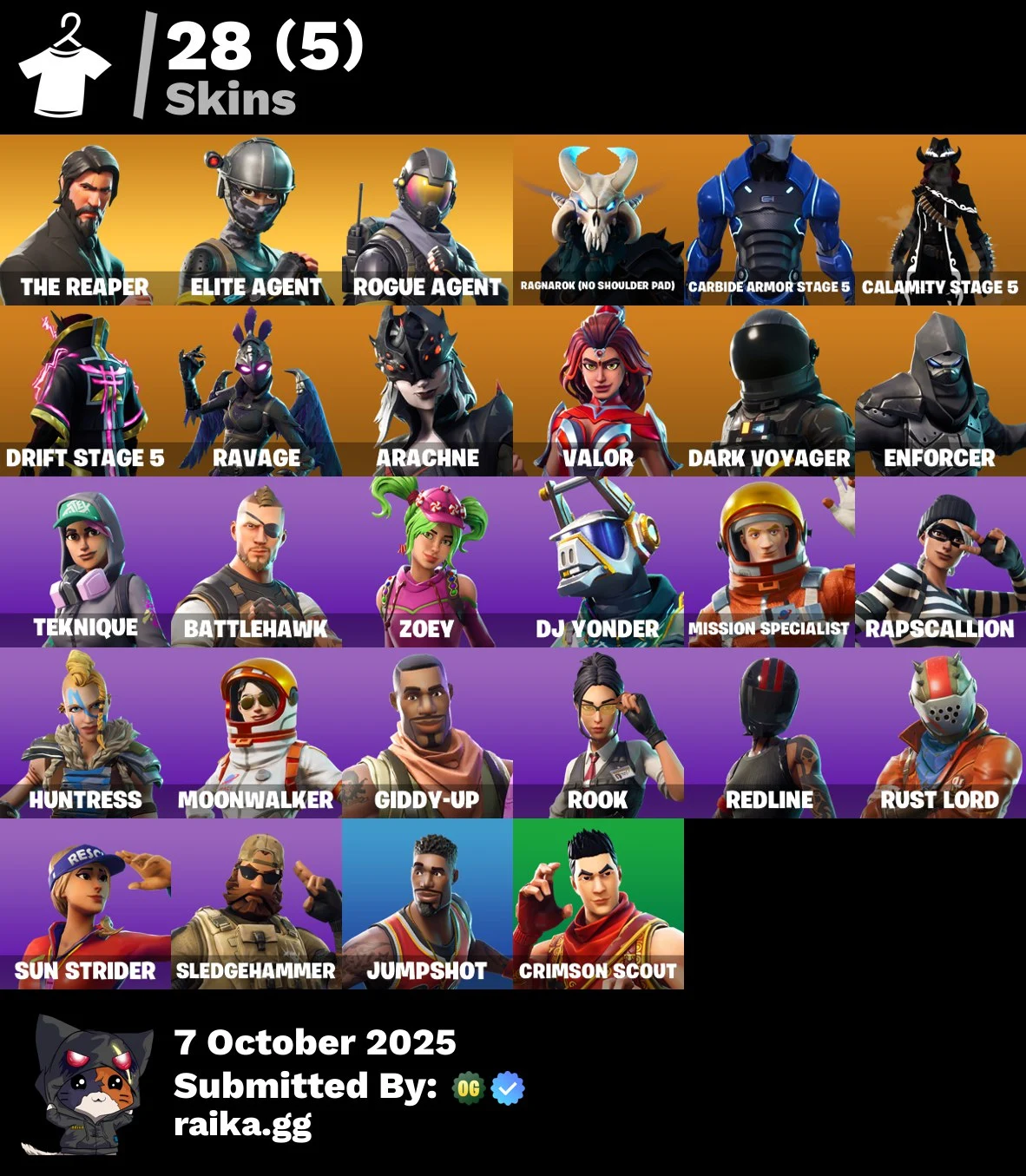 🔥[PC] 28 skins | The Reaper | Take The L | Elite Agent | Plunja | Rogue Agent | Ragnarok (No Shoulder Pad) lai109