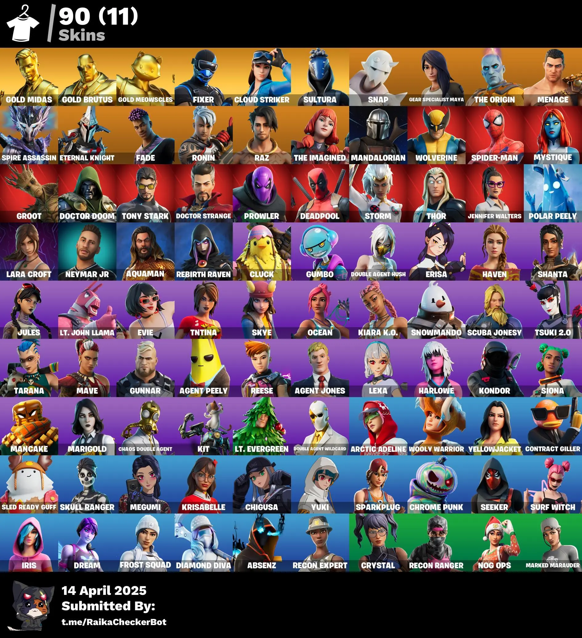 [PC] 90 skins | Gold Midas | Gold Brutus | Gold Meowscles | Fixer | Cloud Striker | Sultura | Snap | Gear Specialist Maya | The Origin ⸱ CHICKSFFN018