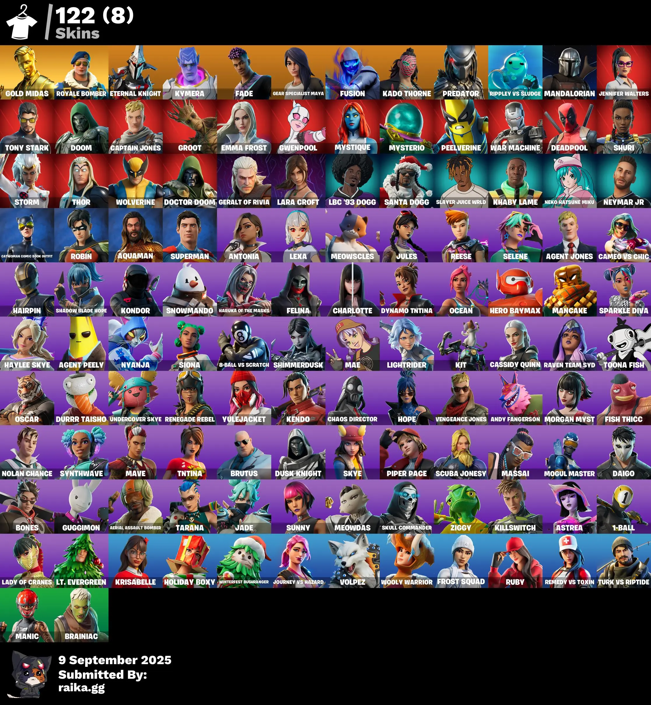 [PC | PSN | XBOX] 122 skins | Gold Midas | Royale Bomber | Eternal Knight | Kymera | Fade | Gear Specialist Maya | Fusion | Kado Thorne | Predator | 1150 VB