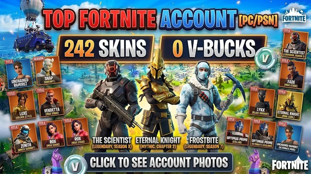 [PC/PSN] 🎮 242 Skins👕 | Unchained Ramirez🕶️ | Frostbite❄️ | Optimus Prime🤖 | Vendetta⚔️ | The Scientist🧪 | Luxe👑 | Eternal Knight🛡️ | Fade🌑 | Lynx🐱