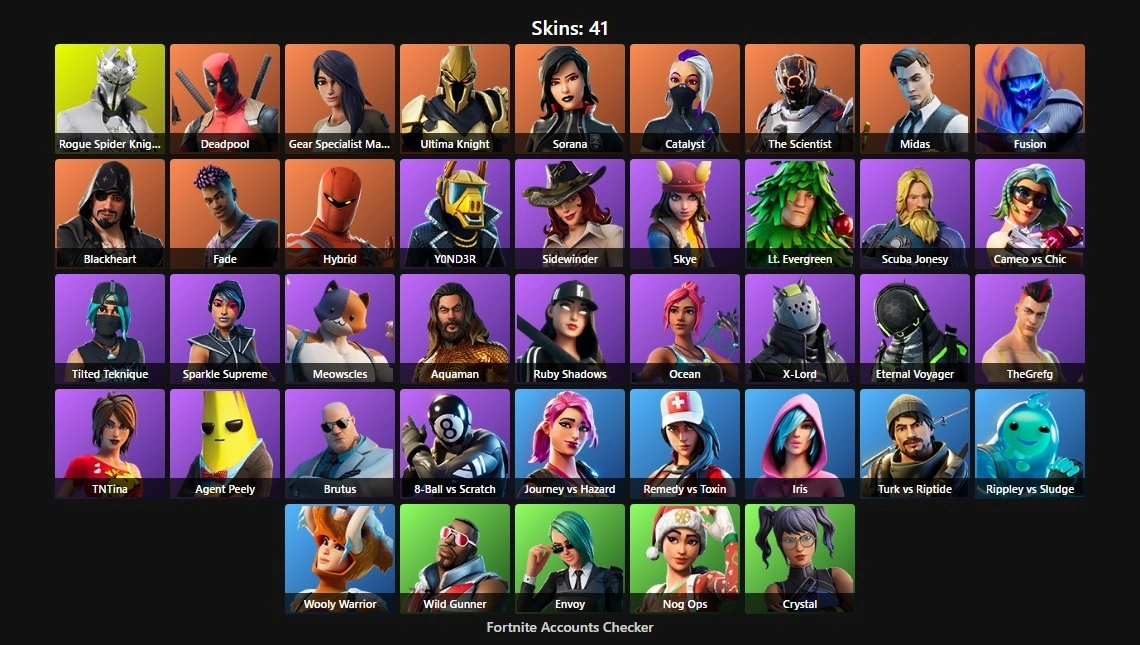 PC/PSN 41 Skins⚡ | Deadpool | Midas | Rogue Spider Knight | Gear Specialist Maya | Ultima Knight | Sorana | Catalyst | The Scientist | Fusion | Blackheart
