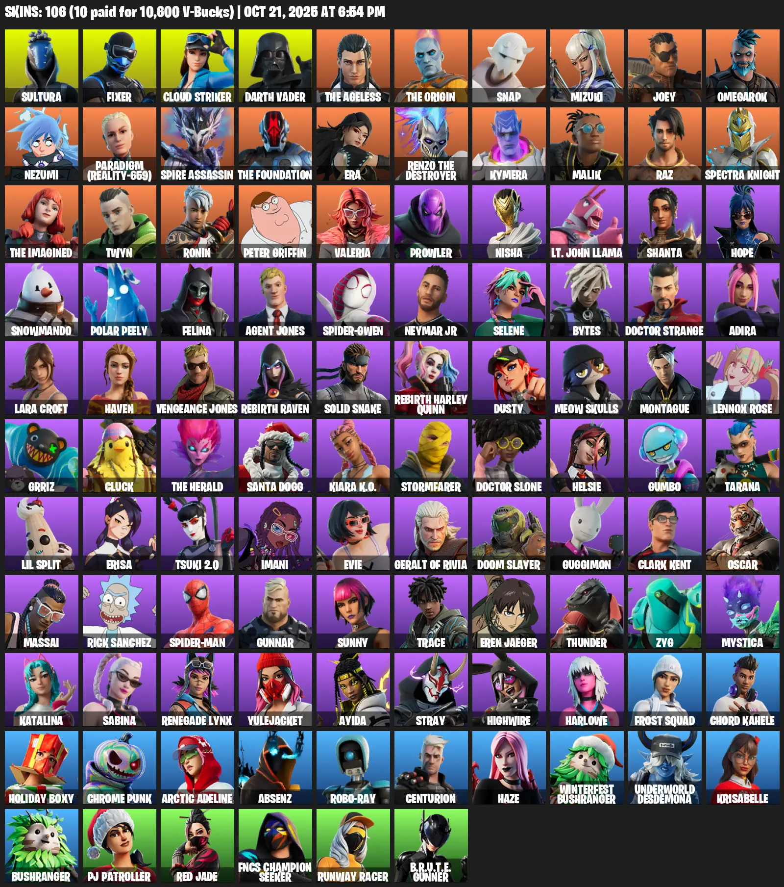 🍨 [PC/PSN/XBOX] 🌟 106 skins | The Ageless , The Foundation , The Imagined , The Herald , Doctor Slone , Doctor Strange , Spider-Man , Geralt of Rivia , Doom Slayer | 💙 550 VBUCKS | ✉️ Changeable Email Now
