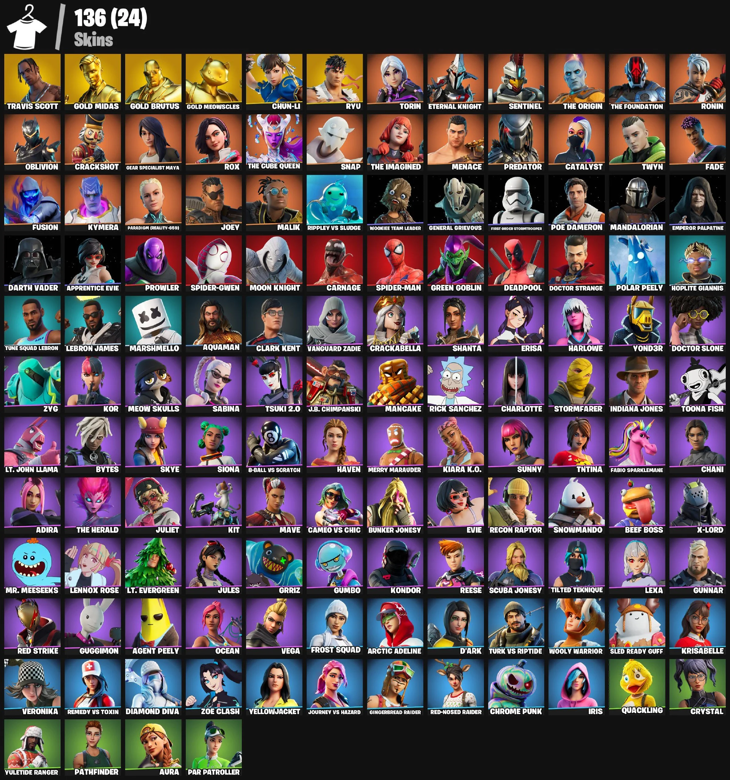 [PC/PSN/XBOX] 136 skins | Travis Scott | Gold Midas | Gold Brutus | Gold Meowscles | Chun-Li | Ryu |
