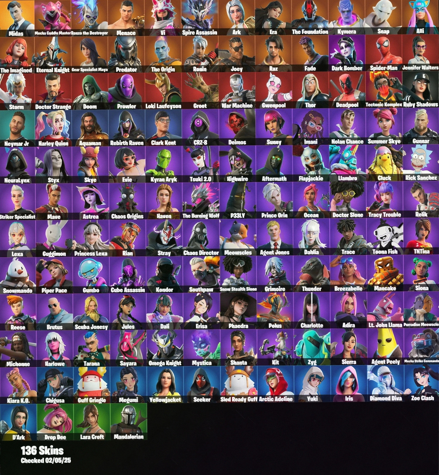[PC/PSN/XBOX] 136 Skins+Midas+Shooting Starstaff+Rage+Astroworld Cyclone+CRZ-8+Deimos+Sunny+Spider-Man+Imani+150 VB #CODE-165004