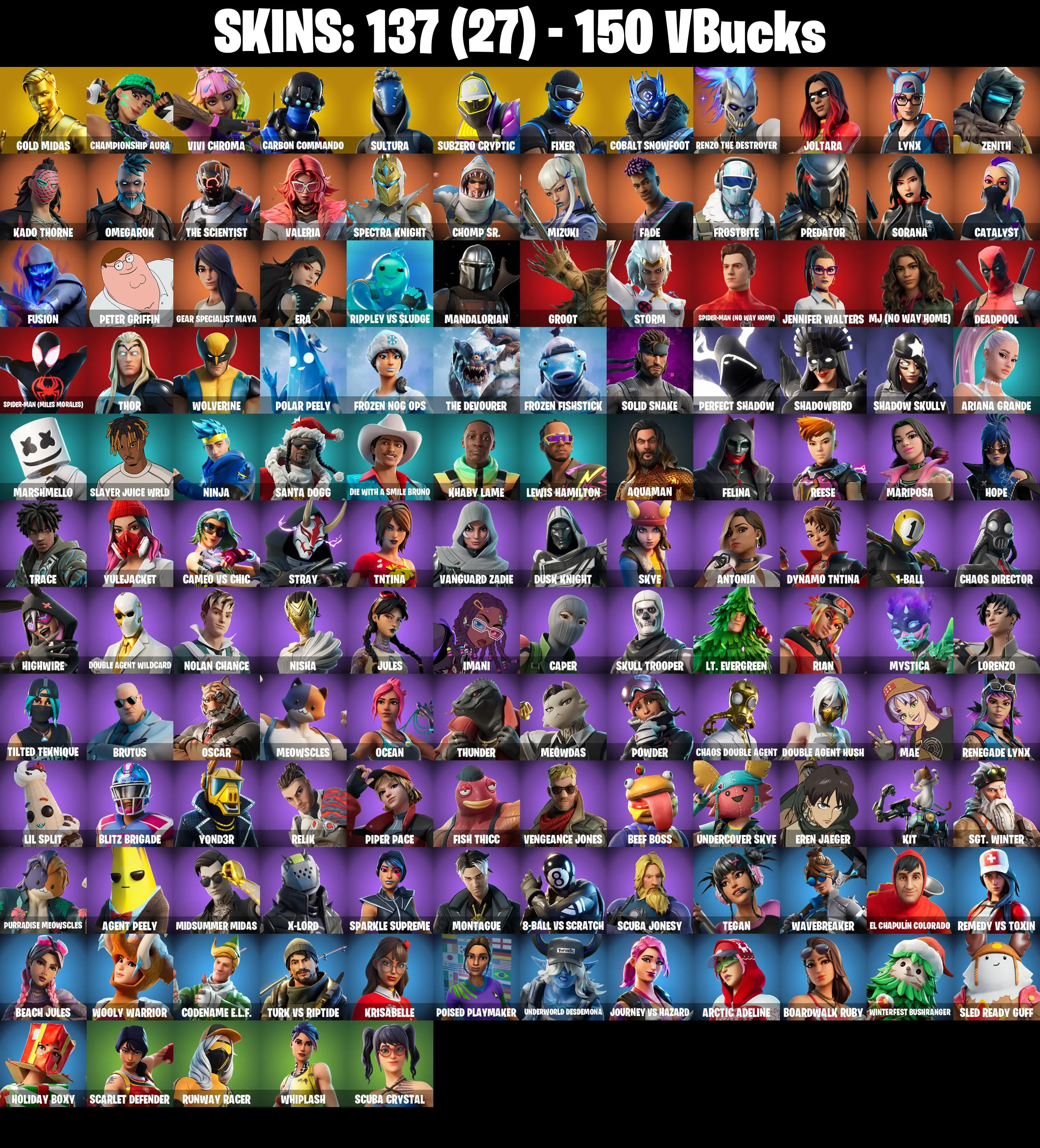 PC/PSN/XBOX ♨️137 skins ✨ Deadpool ✨ Gold Midas ✨ Jabba Switchway ✨ Rage ✨ Championship Aura ✨ Fusion ✨ Mizuki ✨ Kado Thorne ✨ Lynx ✨ #B736