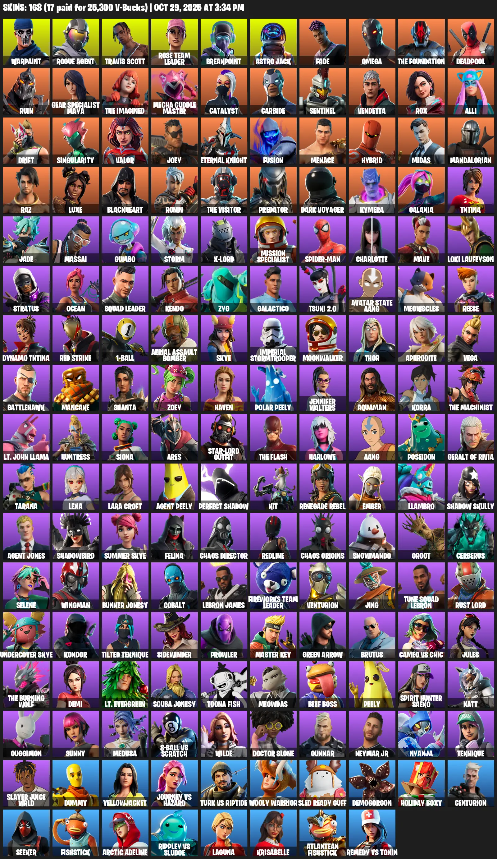 [PC/PSN/XBOX] | 168 skins | Take The L | OG STW | Travis Scott | Omega | Lara Croft | Warpaint | Rogue Agent | Rose Team Leader | #HDF1286 | #MBFN