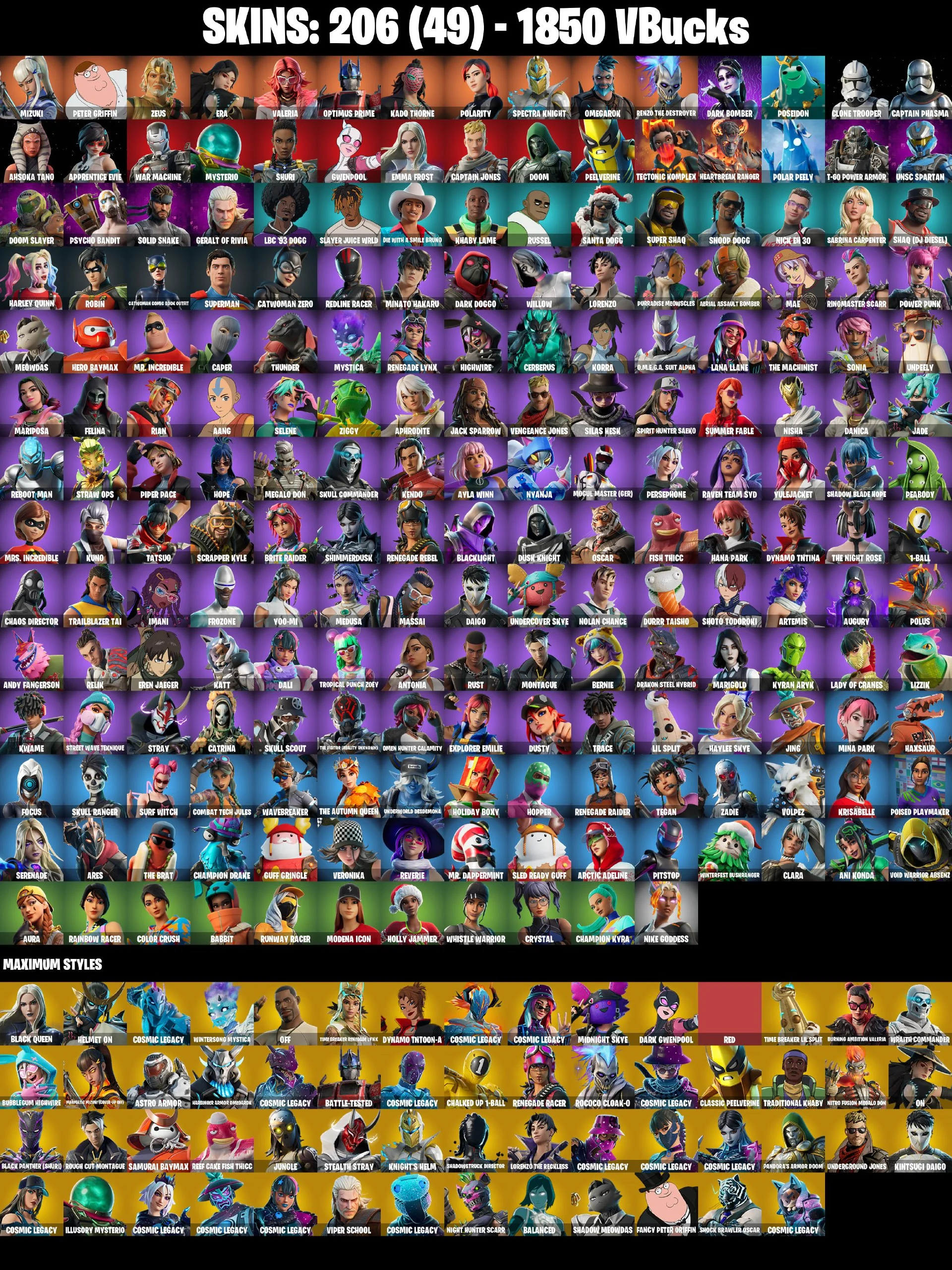 [PC/PSN/XBOX] 206 SKINS ⚡️ Renegade Raider ⚡️ Mizuki ⚡️ Peter Griffin ⚡️ Zeus ⚡️ Era ⚡️ Valeria ⚡️ Optimus Prime ⚡️ Kado Thorne ⚡️ Polarity ⚡️1850 VB